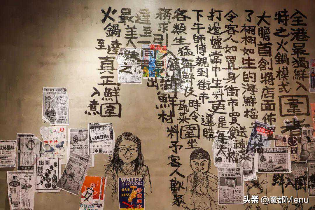 水泥墙上随意的涂鸦和海报,带着几分香港大排档的感觉。
