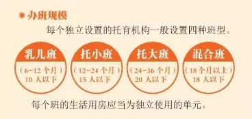 每个独立设置的托育机构一般设置四种班型,每个班的生活用房应当为独立使用的单元。