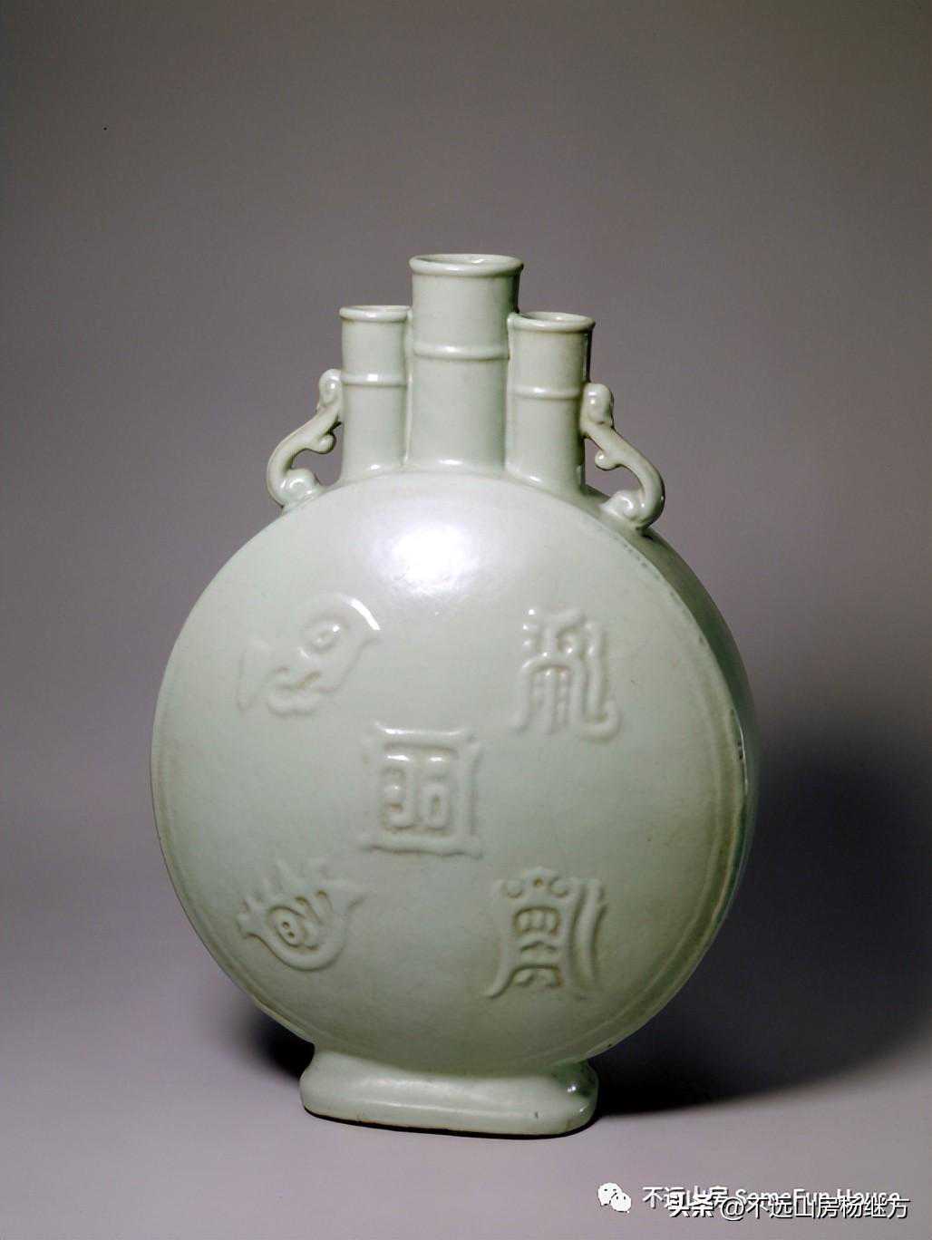 故宫博物院藏清雍正粉青釉凸花如意耳蒜头瓶