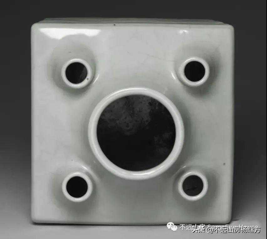 仿定釉——雍正朝的仿定窑制品中有凸印花鼎炉、双系凸印花扁瓶、出戟花觚、印花花囊、葫芦瓶、印花盘、印花碗和撇口小瓶、小盒、小罐等小件的器皿。釉色浆白泛黄而不透明,釉表多有细碎的开片纹,胎体较轻,一般都有凸雕或印花的辅助装饰,花纹规整细腻,器底有釉下暗刻的“大清雍正年制”六字篆书印章款;和少数暗刻双圈六字楷书款“大清雍正年制”。