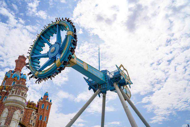 两人组推荐打卡高空飞塔项目,21个双人座椅在46米的高度,以50km每小时的速度感受旋转和升降运动同时带来的刺激。这个时候总会情不自禁地握着旁边人的手,不要怕,睁开双眼,一边尖叫,一边欣赏天空美景,说不定还能收获一段良缘。