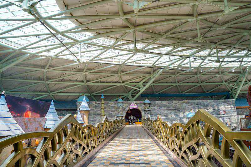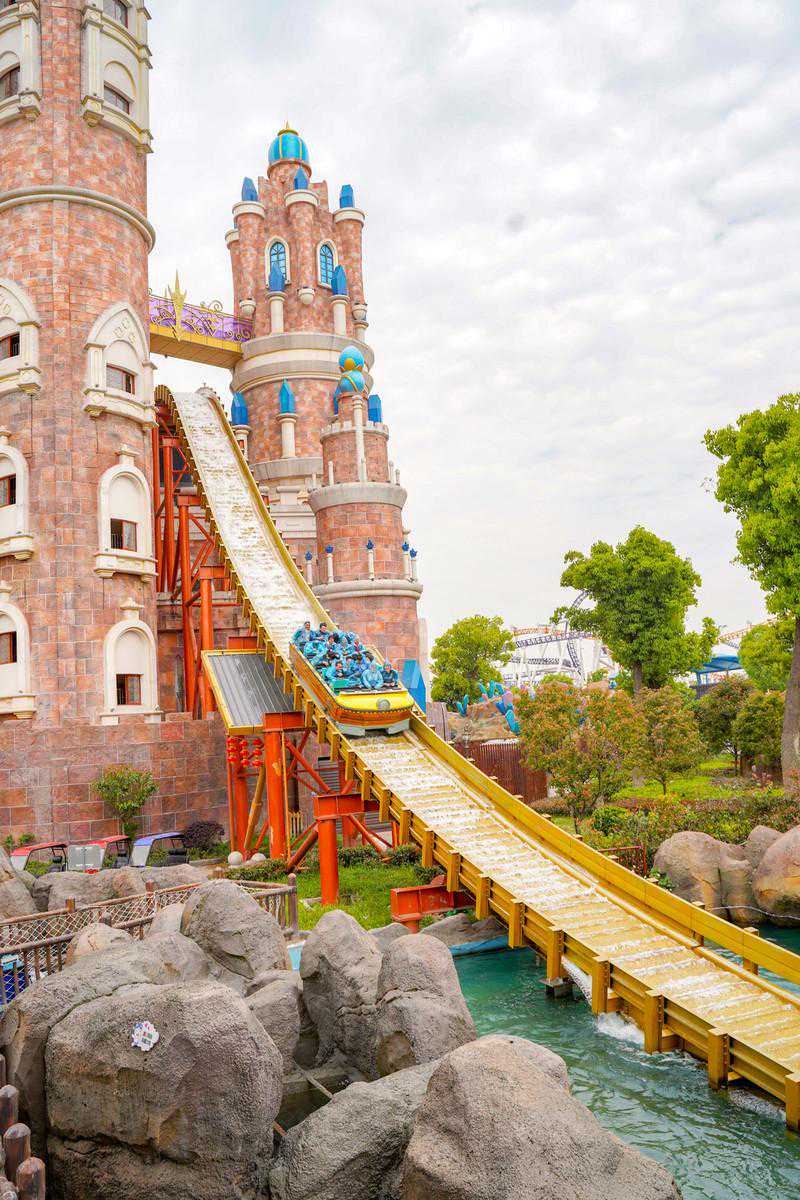 室外的水项目还有水晶城堡里的飞舟冲浪,从26米高的轨道上用80km每小时的速度冲入池中,掀起冲天巨浪,水花四溅,水雾打在脸上的感觉也很舒适。一开始的惊险刺激,再到后来的悠然自得,让人难忘。