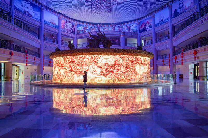 令人印象深刻的大堂秀用满满的科技感和视觉效果征服了我,巨型的LED天幕屏上演着缤纷的春夏秋冬是世间万物,栩栩如生的细节,身临其境的震撼,一场声光电技术打造的感官盛宴,就在绍兴东方山水的山之王国。