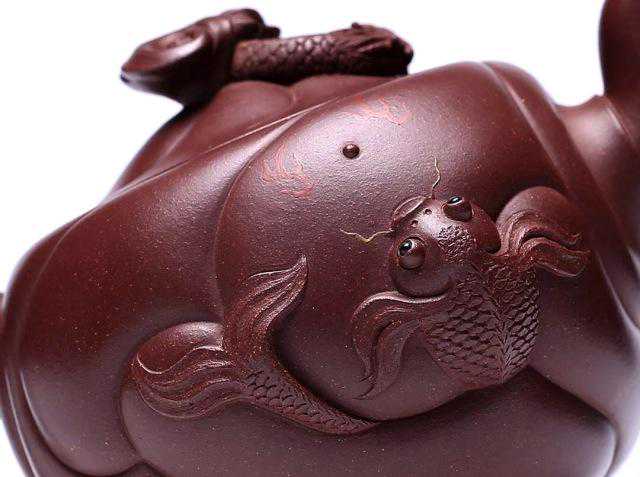 “鱼化龙”壶以鲜明的立意,阐述鱼跃龙门、前途无量的畅想与追求。这一款式,由唐凤芝始创,经百余年依旧不失古意,历久弥新,是前辈对紫砂文化艺术的一大贡献,作为技艺楷模,是年轻一代学习和借鉴的榜样。