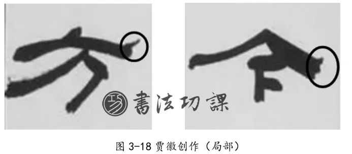 又如全国第三届隶书作品展优秀作品中贾徽的创作(图3-18)也出现了提笔上位出锋式的收笔方式。