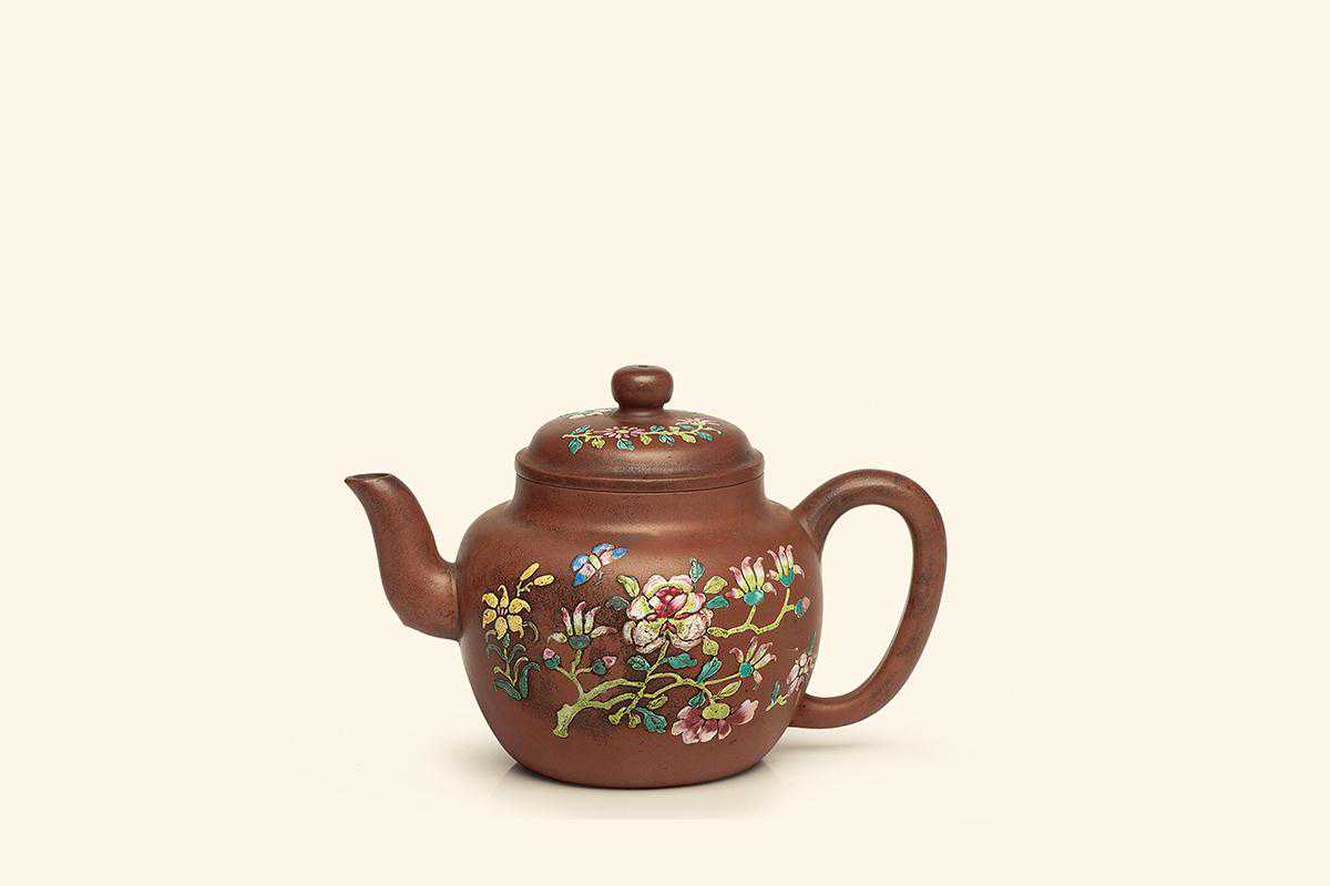 1889清中晚期邵顺昌制粉彩朱泥壶