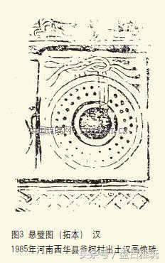 璧是具有鲜明中国特色的器物。中国古代,对璧非常重视,其用途极其广泛。如用于祭祀:《周礼·春官·典瑞》:“璧以礼日月星辰。”《汉书·明帝纪》:明帝“亲执珪、璧,恭祀天地。”《东汉会要·礼四·嘉礼》:“《汉祀令》曰:天子行有所之,出河,沉用白马、珪、璧各一。”中国古代祭祀繁多,从日月星辰,名山大川、宗庙以及百神,而祭祀时,常需用璧。用于馈赠,《汉书·南越王传》记载,南越王赵佗赠送给汉文帝的礼品清单中,头一项就是“白璧一双”。用于聘礼,《汉书·儒林传》记载:“上(汉武帝)使束帛加壁,安车裹轮,驾驷迎申公”。用于婚礼,《后汉书·皇后纪·梁皇后传》记载:“悉依孝惠皇帝纳后故事,聘黄金二万斤,纳彩雁、璧、乘马、朿帛,一如旧典”。用于朝会,《汉书·食货志》记载:“今王侯朝贺以苍璧”。用于佩饰,《盐铁论·散不足》说汉代的贵族妇女“长裾交袆,璧瑞簪珥”,璧是中国古代组玉珮中的主件。用于室内悬挂和陈设,汉代画像石、画像砖和漆画中,常有悬璧图(图1、2、3、4),除了显示富有、豪华之外,还有辟邪去恶的作用。用于丧葬,战国秦汉墓的随葬品中,常常发现有璧。目前的玻璃璧,多数是在墓葬中发现的,大多是放在死者的头部,如1983年湖南省汩罗县汩罗山第33号战国楚墓(图5)、第36号秦墓(图6)的玻璃璧,都是放在死者头部的。《周礼》郑注曰:“璧圜象天。”把玻璃璧置于死者头部,有墓主人灵魂升天的含意。