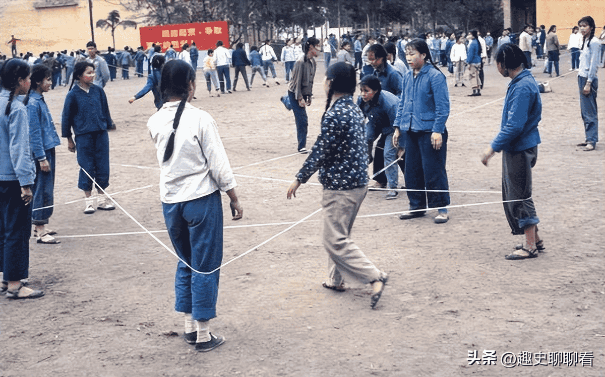 孩子们会在操场、街道或者自家门口找一块平坦的地方,用皮筋编织出不同的形状,比如直线、方形、三角形等等。