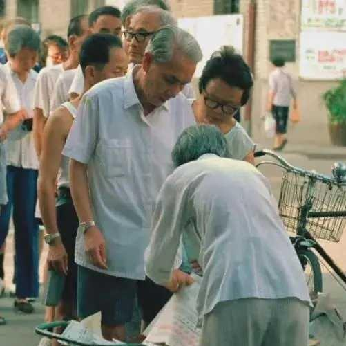 90年代,北京,排长队等着买报纸的人们。