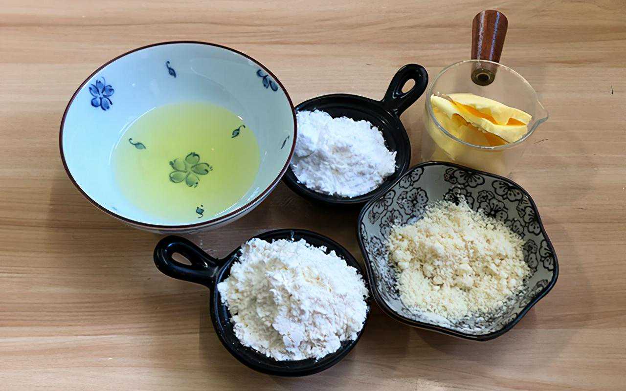 第一步:准备食材。低筋面粉35克、黄油35克、蛋清35克、白糖/糖粉20克、盐0.5克、杏仁粉一小勺约5克。