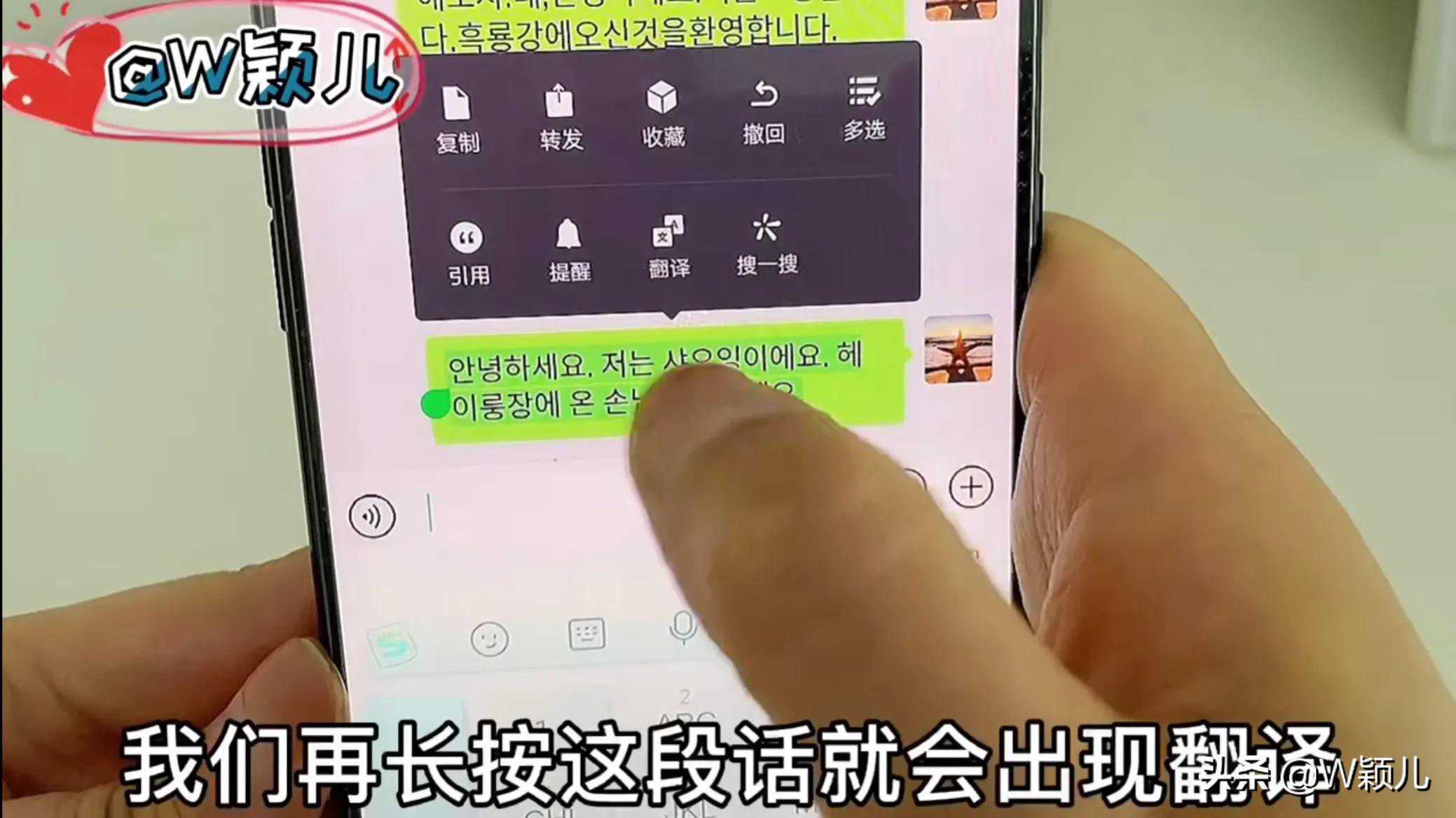 它俩的区别呢就是这个要是说话的时候呢要一直摁着说,另一个呢是点一下之后你就可以说话了,这个是要手指不能松开的,说这样呢也是就翻译成韩文了。