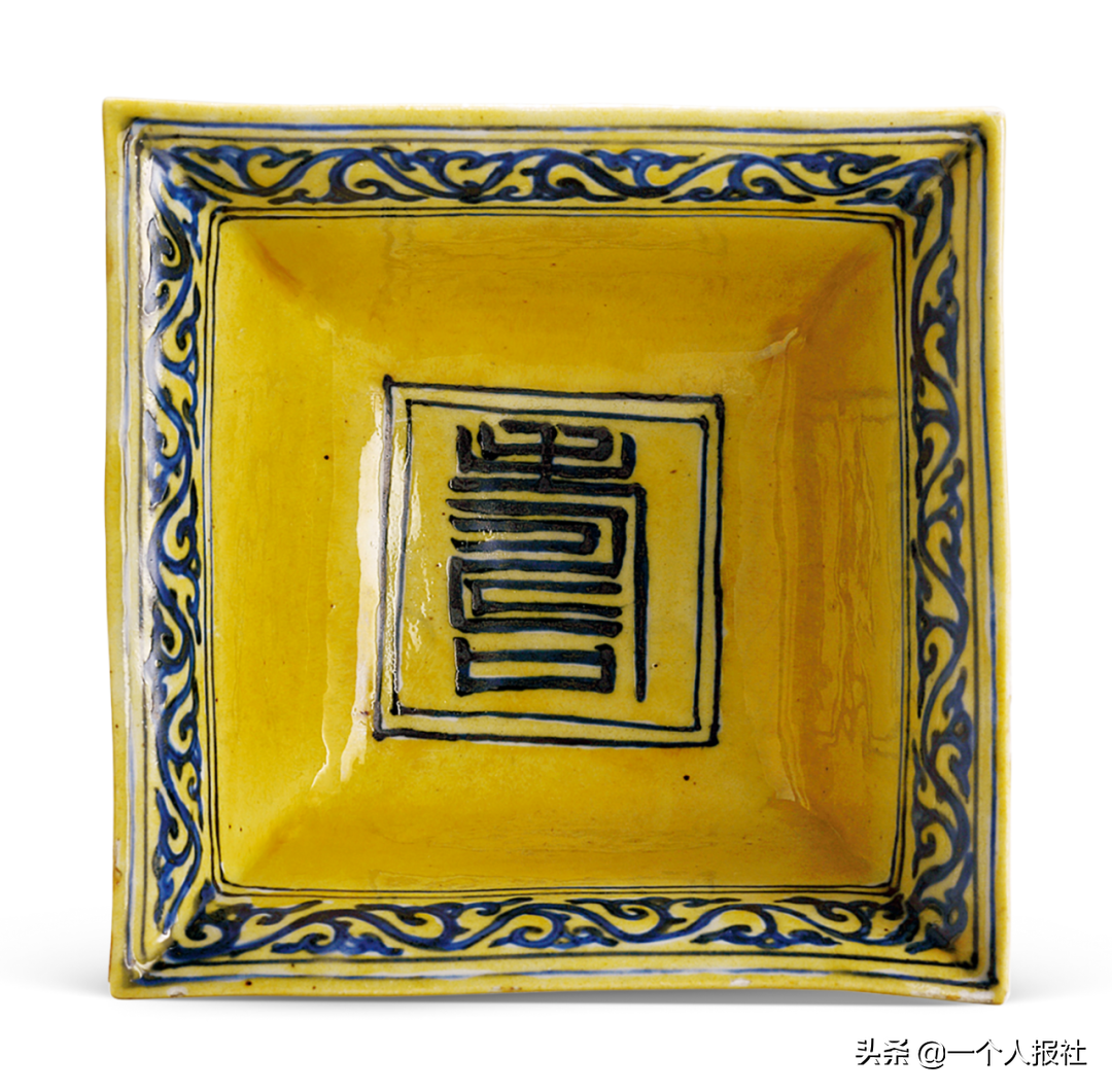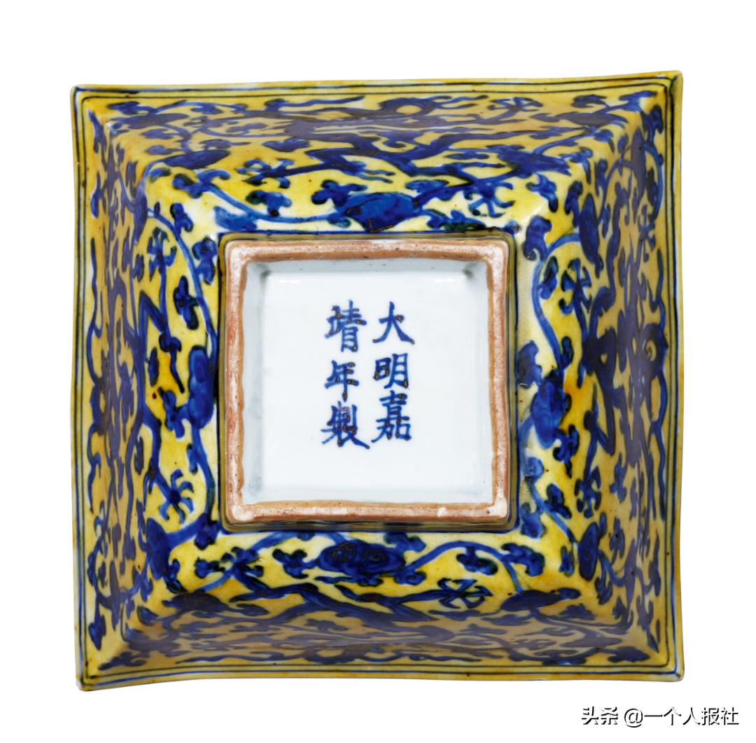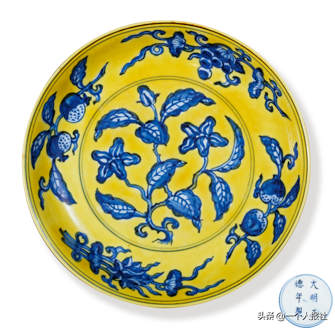 明正德黄釉地青花石榴花盘