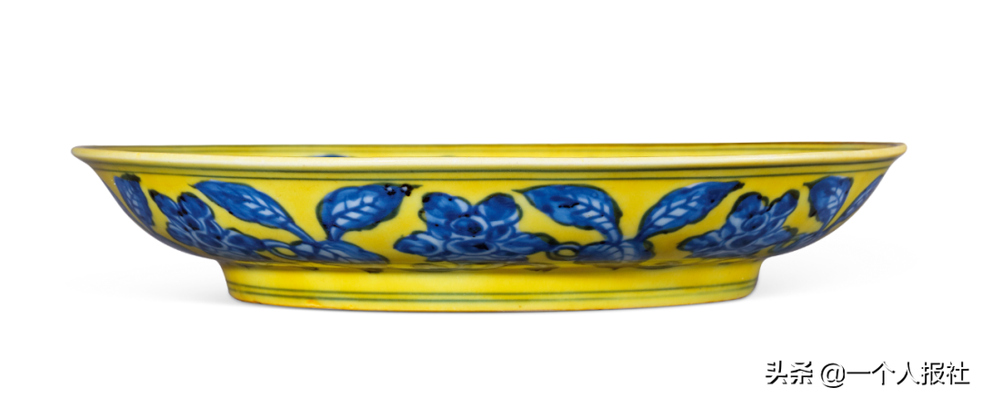 明正德黄地青花折枝花盘