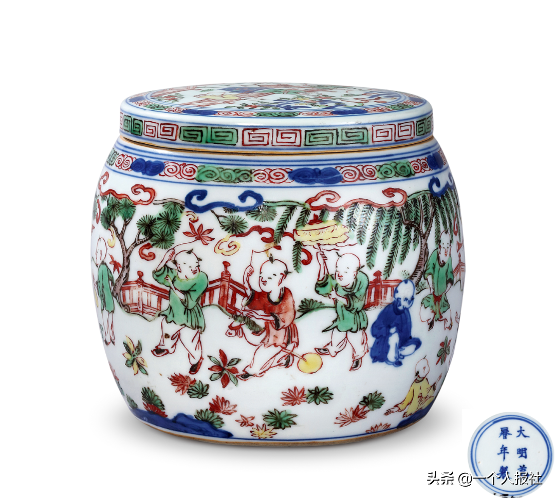 明万历青花五彩婴戏围棋罐