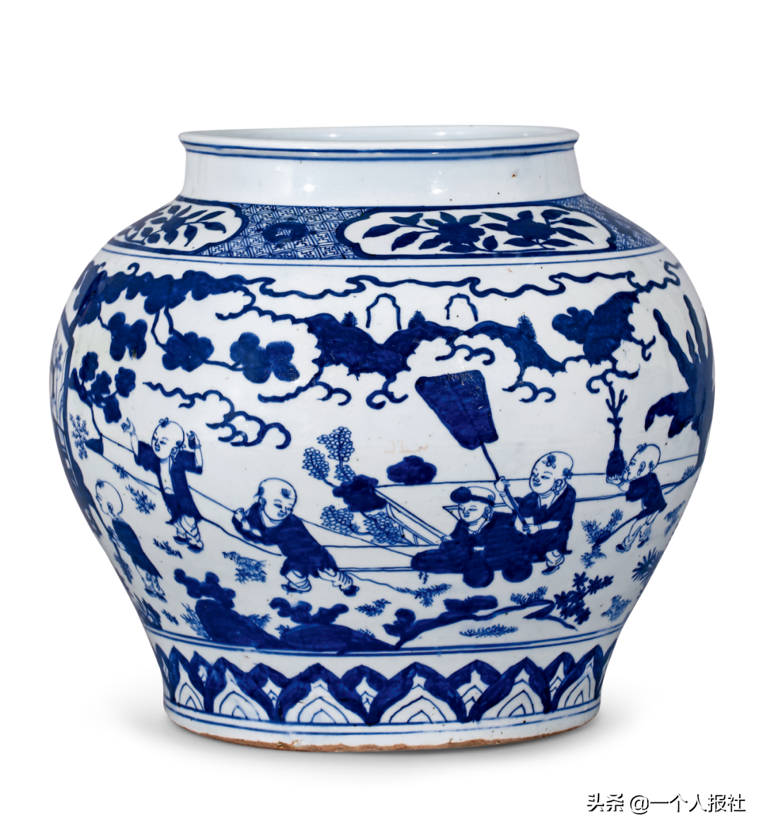 明崇祯青花百子图大笔海
