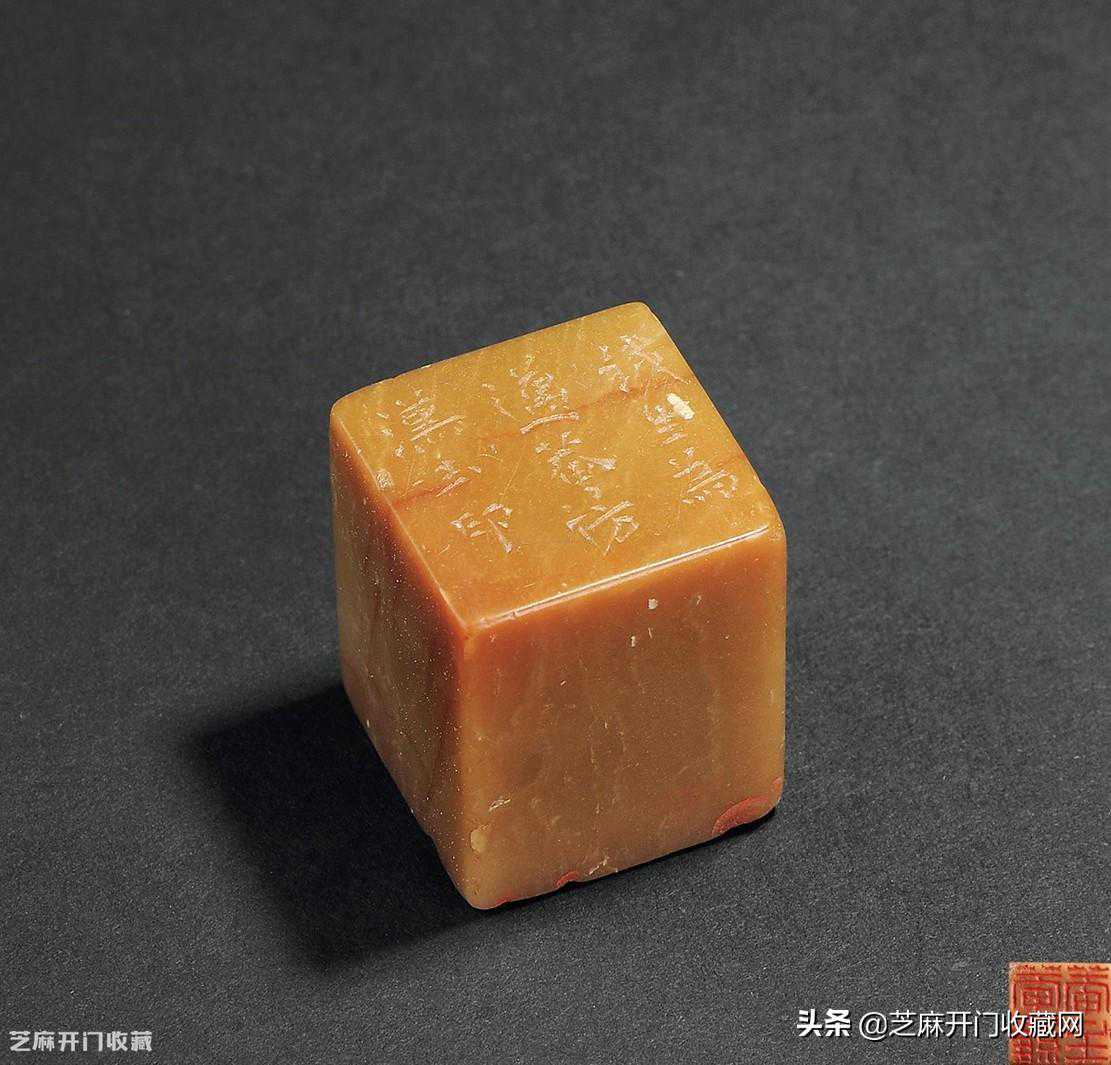 5:奚冈刻青田石平钮印章,尺寸:2.5×2.5×3厘米,估价:RMB300,000~400,000,成交价:RMB3,105,000