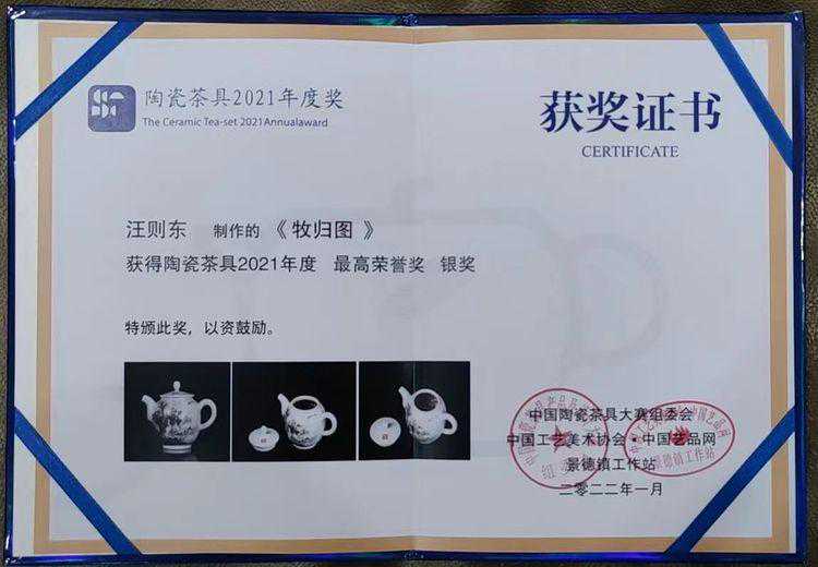 汪则成,原名汪则东,斋名:瓷藏轩,陶瓷艺术家,1981年出生在江西省乐平市潘村。从小得到大伯汪正焱的绘画熏陶,九岁时爱上了画画。1997年来景德镇和石炳寿老师学徒。2009年王锡良大师把我推荐给王习三大师,前往求学,内画技术深造。得到王习三老师认可,成为王老师的学生,2012年内画培训结业后,回到景德镇研究陶瓷内画艺术创新,全身心投入陶瓷内画创作。2017年拜上海画家陈无忌老师学习山水泼彩技法,2021年拜中国工艺美术大师汪明老师门下,学习陶瓷绘画意境构思与创新。2016年10月学生汪则成策划了一次《南北俩王》37年见面会,两位首届中国工艺美术大师王锡良与老师王习三出席了此次活动,两位大师对学生内画作品进行了高度点评,并且为学生汪则成题词,王锡良大师题“汪则成陶瓷内画别有洞天”,老师王习三题“陶瓷内画开拓者——汪则成”,最后两人合作为学生汪则成题词,“业精则成”。作品薄胎杯2011年4月被江西省博物馆收藏。2013年中国传统工艺美术精品展中“陶瓷内画溪山烟云”荣获“巧夺天工”金马奖(金)奖。汪则成陶瓷作品《荷趣》荣获江西省第四届职业美术教学成果大赛(二)等奖,汪则成墨彩瓷板画作品荣获2009年江西省陶瓷艺术大奖赛(金)奖。陶瓷墨彩壶(牧归图)在2021年度“陶瓷茶具最高荣誉奖”作品荣获银奖,作品曾刊登在,、江西商报人物封面、、瓷都晚报、新闻信息报、创业周报、以及江西卫视,江西二套(地宝当家)栏目,景德镇电视台一、二,三套媒体报道等。现为:江西省工艺美术师,国家一级技师,景德镇市高级工艺美术师,浮梁县美术家协会副秘书长景德镇美术家协会会员,南昌航空大学科技学院艺术设计专业客座教授,江西省美术家协会会员,江西省陶瓷行业协会会员,江西省高技能陶瓷艺术家协会会员,江西陶瓷内画非遗传承人,中国少年儿童基金会爱心大使,中国管理科学研究院学术委员会特约研究员。