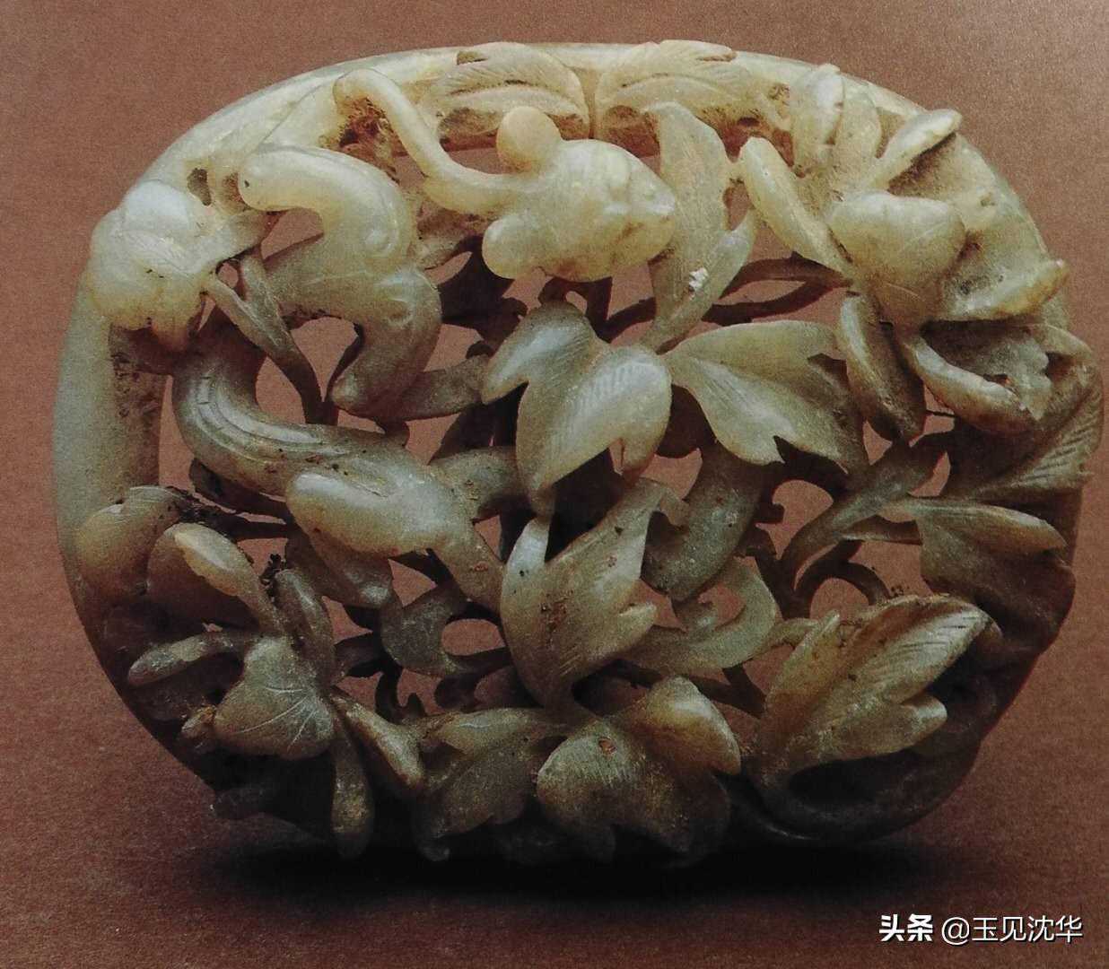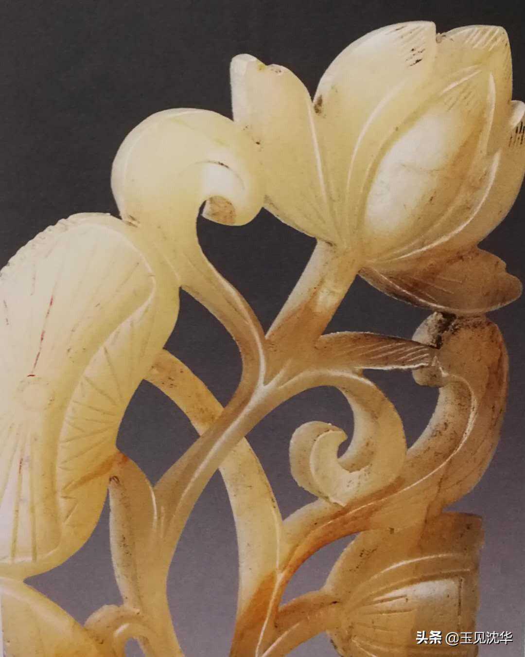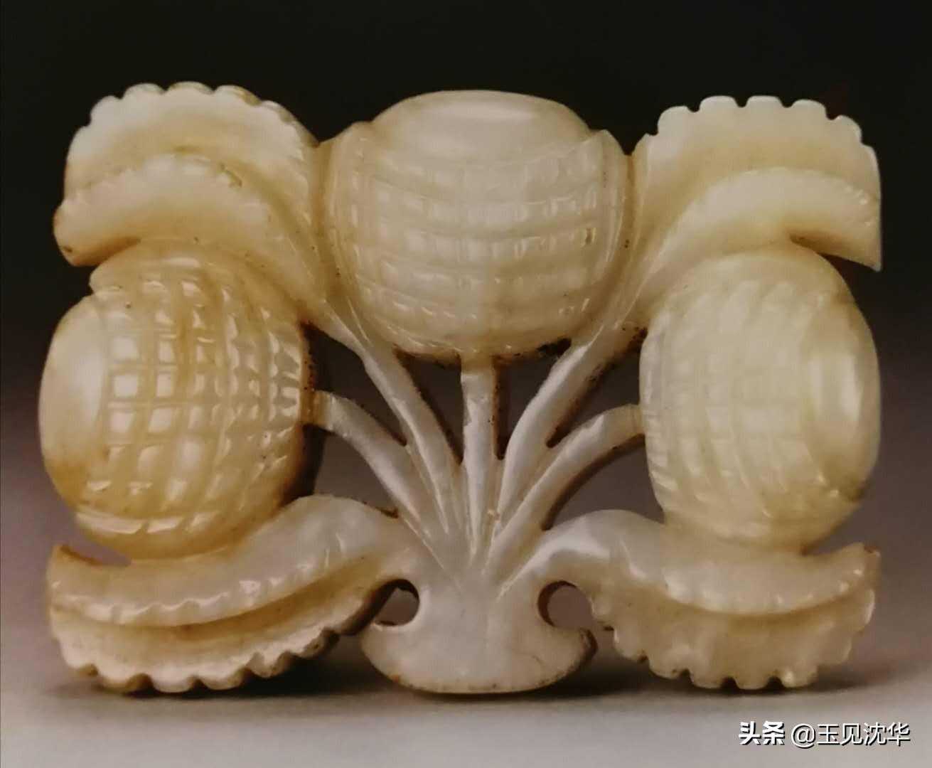 此外,还有其他很多花卉造型的玉饰品,一类就是圆雕的作品,另一类就是镂雕雕花玉片。