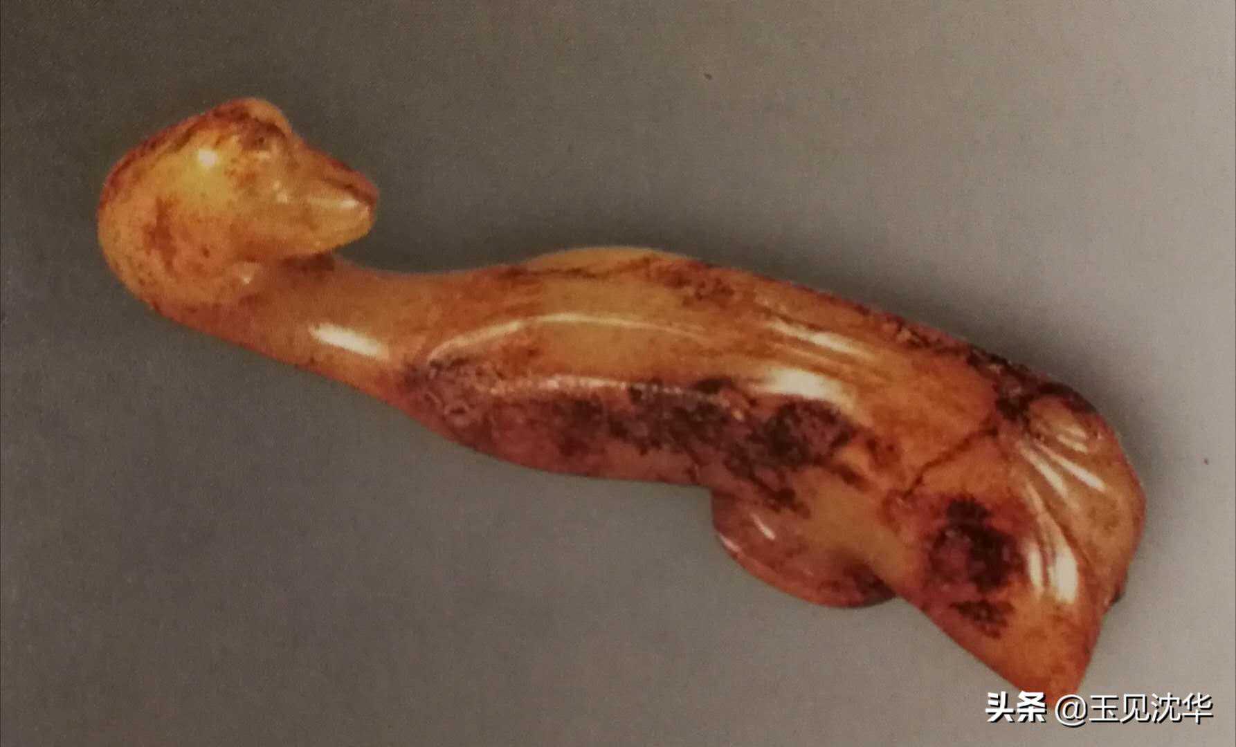在宋代的玉带钩中还有许多带有宋代文化特征的应时作品,其中有蟠螭纹饰带钩、鸟头纹饰带钩、还有鱼柄形状的带钩等多种形式。