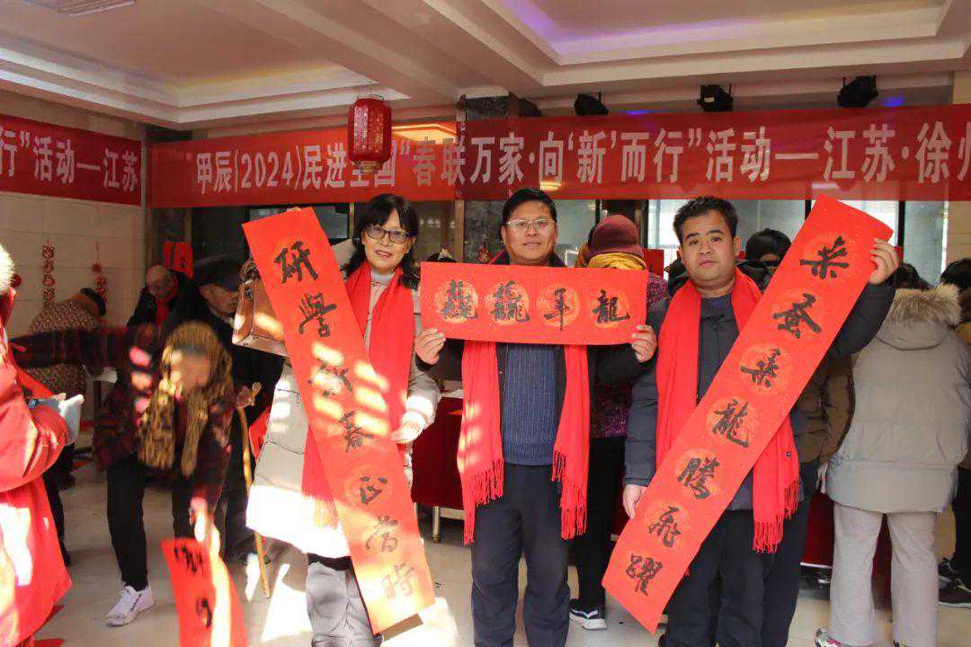 龙腾云似海,燕舞景长春。为贯彻落实民进中央、省委部署,发挥民进文化界别优势,履行服务社会职责,1月26日,民进市委会专职副主委孟炳华带领徐州民进开明书画院院长翟立新,书画家华敬福、李一辰、陈伯舸、陈巧令、张禹、刘爱东等和机关同志,赴铜山区铜山街道桥上村开展甲辰(2024)民进全国“春联万家•向‘新’而行”活动。民进铜山区支部会员在主委邵静的带领下,全程参加活动。
