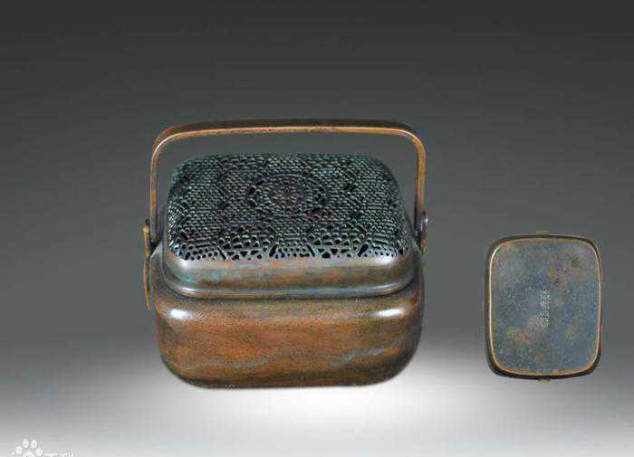 手炉为我国冬季取暖用具之一,一般为铜质或珐琅质。其体积较小,造型多以方圆为基准。炉内装有燃炭,炉顶有镂空罩盖。手炉可手提、手捧或放入袖内用于取暖,类似于现代人用的“暖宝宝”。