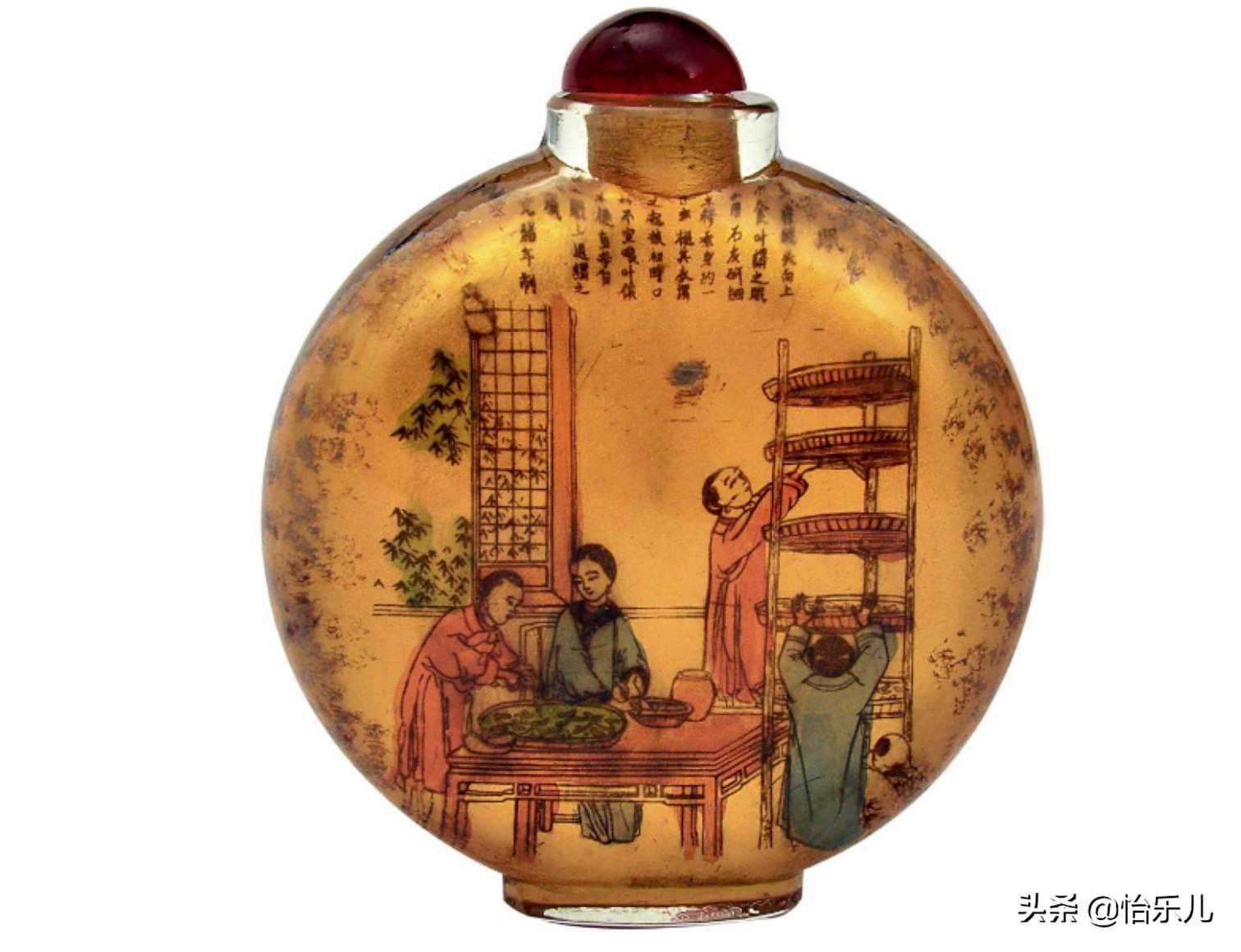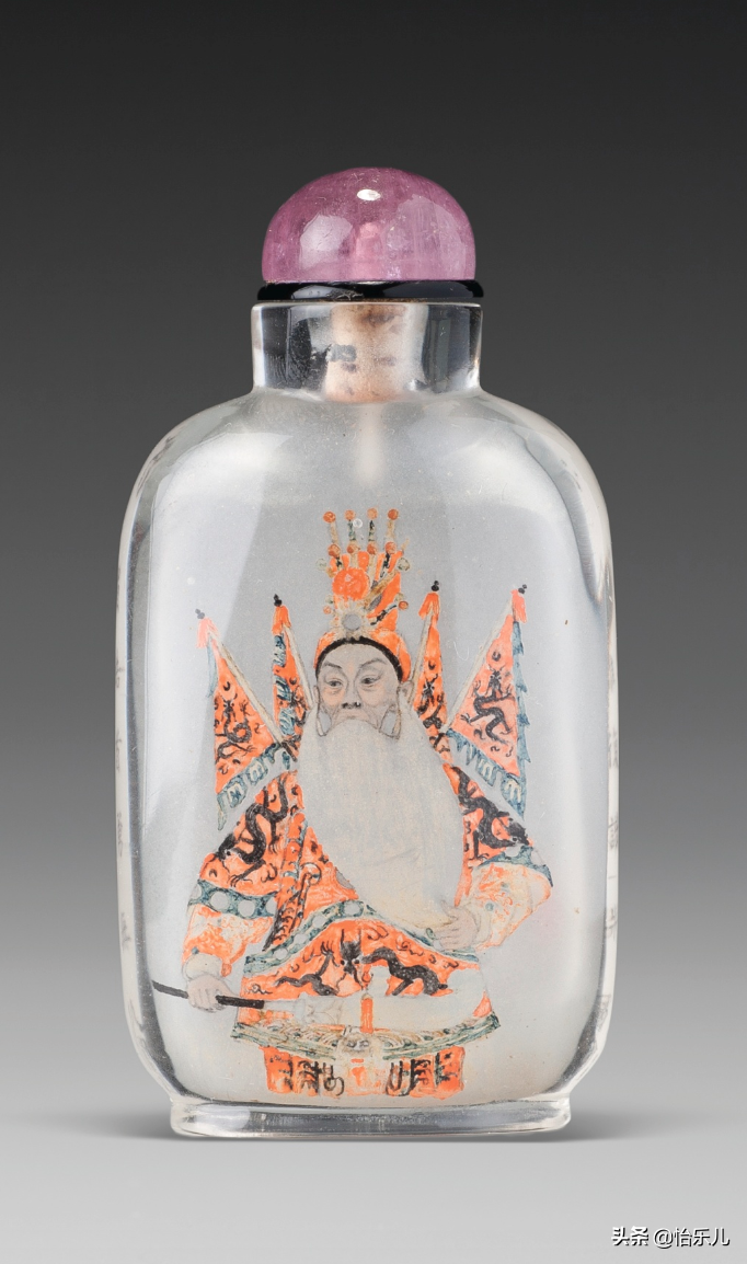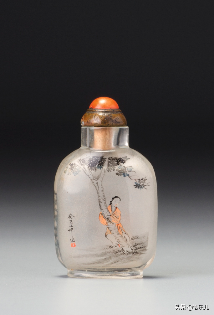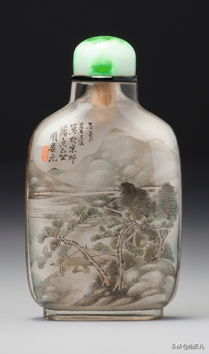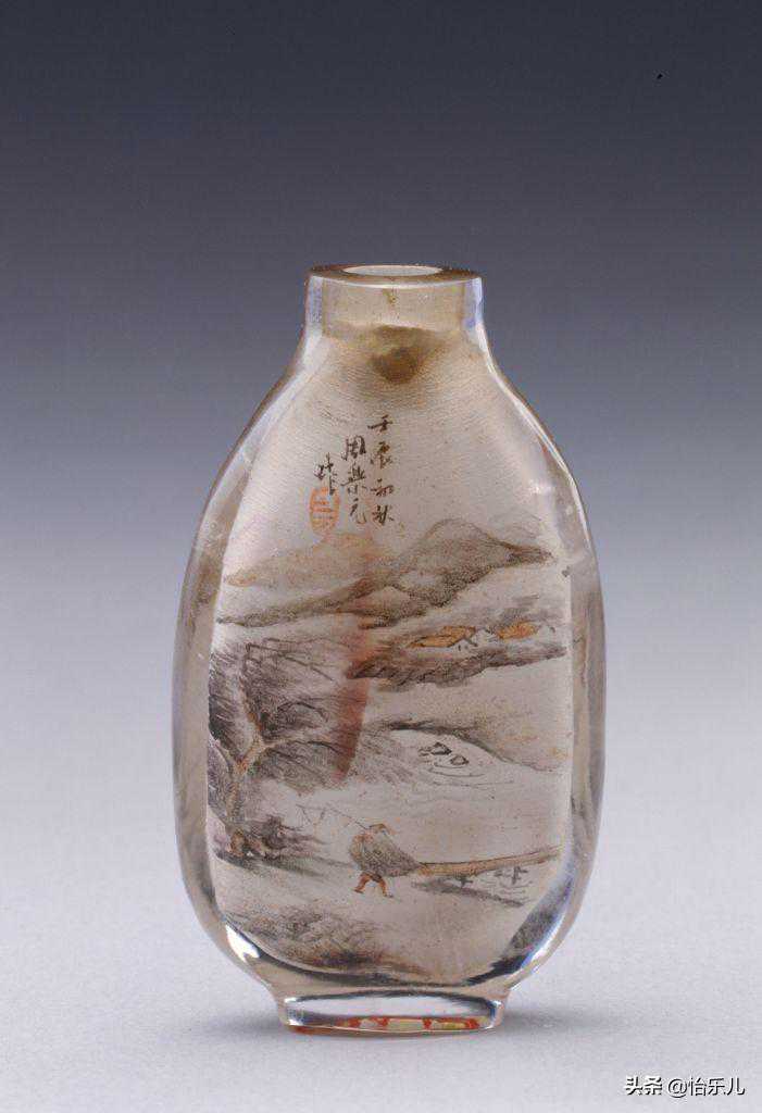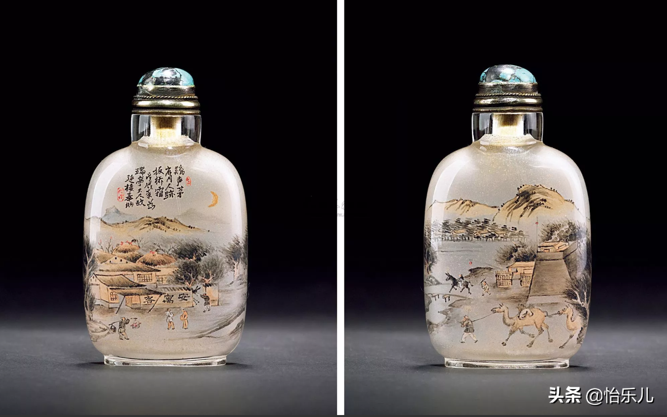 而在水晶、玻璃壶内壁作画的“内画鼻烟壶”最终演化成艺术成就最高,也最能代表鼻烟壶制作技艺的种类。旧时一些迷信的老北京人,实在不能理解在壶内壁作画的技巧,认为是鬼神钻入壶中,施展法术画出精美画片,所以也称之为“鬼画壶”。