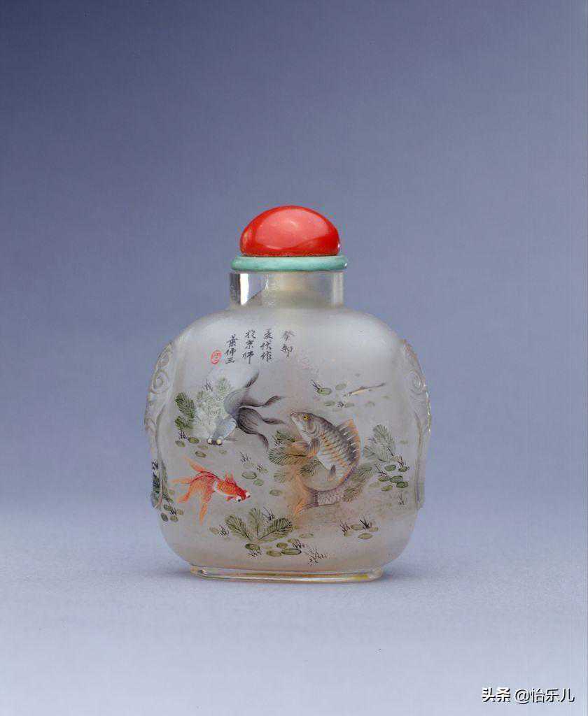 叶仲三玻璃内画鱼藻纹鼻烟壶,故宫藏