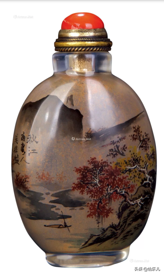 1897年丁二仲作玻璃內畫湖畔清輝圖鼻煙壺52.5万港币
