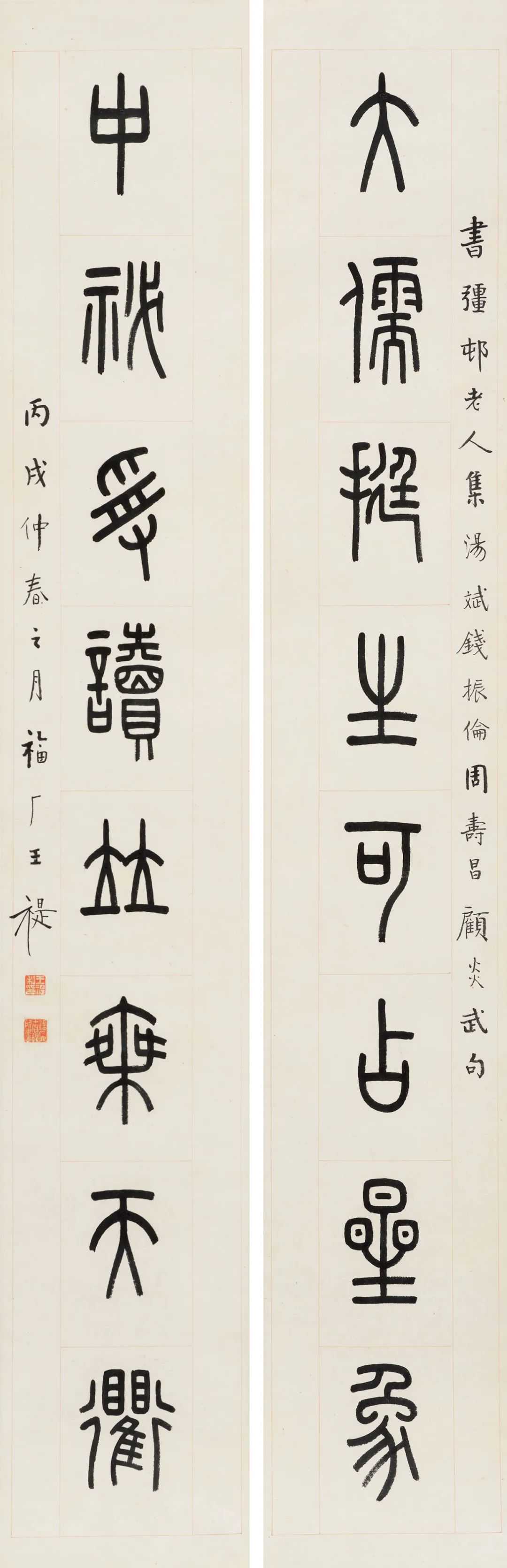 吴大澂(1835-1902),初名大淳,字止敬,又字清卿,号恒轩,晚号愙斋,江苏吴县(今江苏苏州)人。清同治七年进士,曾入李鸿章幕。吴大澂精于鉴别和古文字考释,亦工篆刻和书画。少从陈硕甫学篆书,中年后又参以古籀文,益精工。题跋行楷方正流丽,独树一帜。作山水,用笔秀逸,仿古之作尤佳。