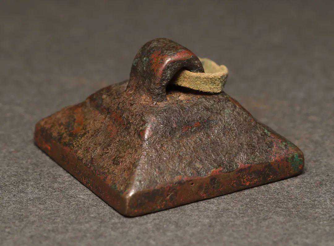 此战国“敝陵右司马敀鈢”铜印印面尺寸3.9厘米见方,坛钮,阴文,自右向左以“二三二”三行排列,四周施以与文字等粗的边栏,文字笔画粗壮匀称,字口清晰,字形方中带圆,结体长短相配,显示出一种自由随意又稚拙粗犷的风格。