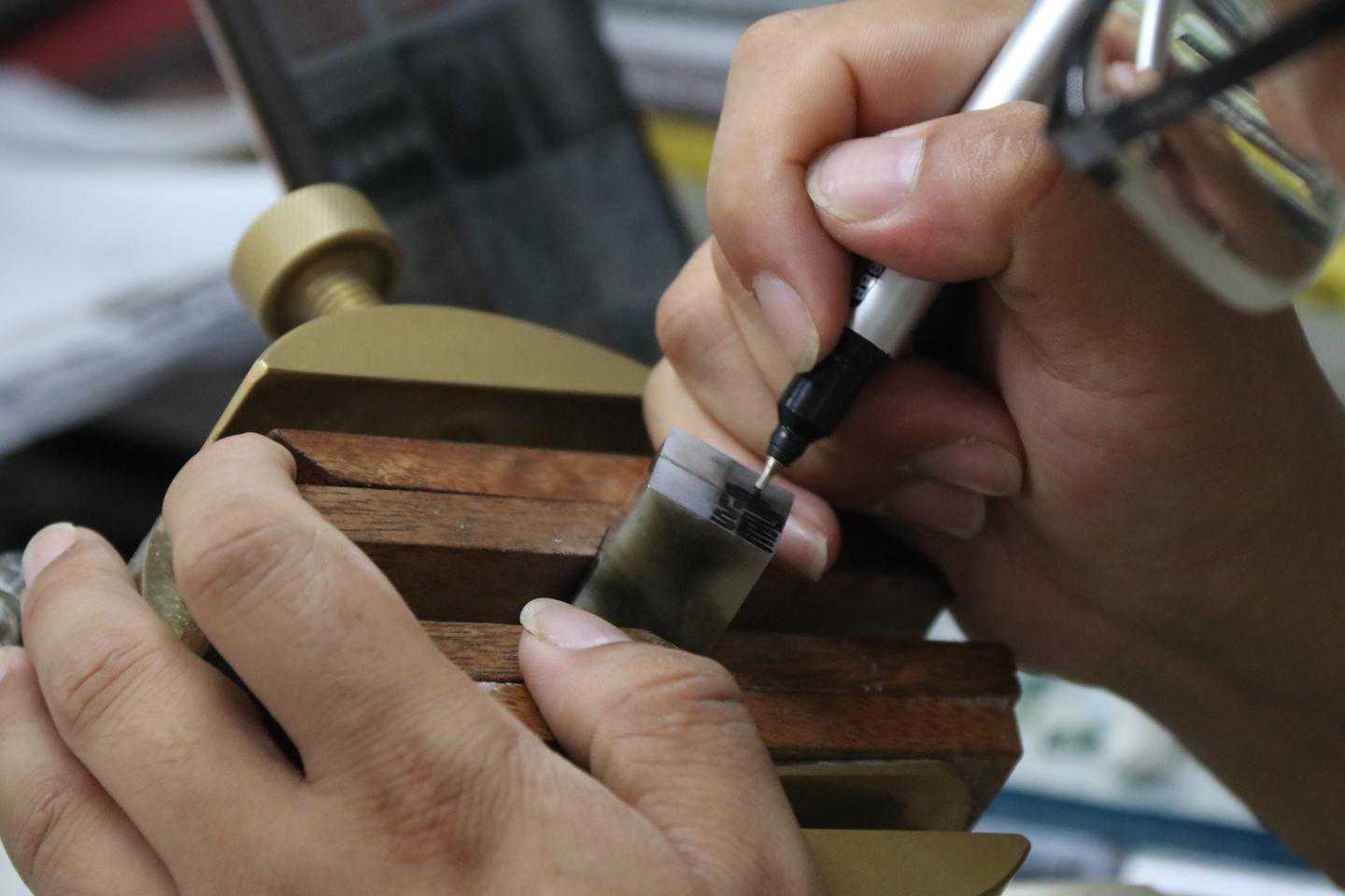 廉杰是一名本土成长起来的90后书画家,擅长简牍书法、国画山水和古玺汉印,在悦心国际书画村创办工作室已有6个年头。每年的书画文化艺术节,他都会抢抓机遇与全国各地名家进行交流学习。本届艺术节,他还特意准备了一些比较精致的画和印章展示出来,届时大家可以根据个人需求现场进行定制。一大早,他便忙着篆刻起了印章。