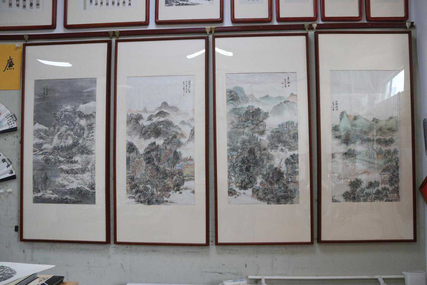 省美协、书协会员廉杰说:“这次我也邀请了一位中书协会员黄鹏,他是90后,现在是书法研究生在读,过来我们一起交流学习。今年我准备了小一点的画,还有四吊屏这种,容易展示的作品,还有印章、扇子这些东西,做得精致一些。”