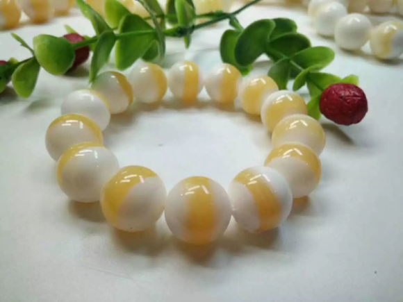 另外还有神似白花蜜蜡般的蜜蜡砗磲料——由白色和黄色混合在一起,十分好看!