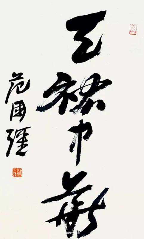 范国强的这幅字写的是天佑中华。这幅字气势雄强,质朴典雅,耐人寻味。