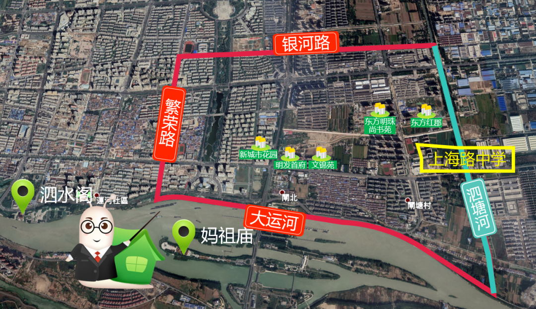 施教范围:东至泗塘河,北至银河路,西至繁荣路,南至大运河。