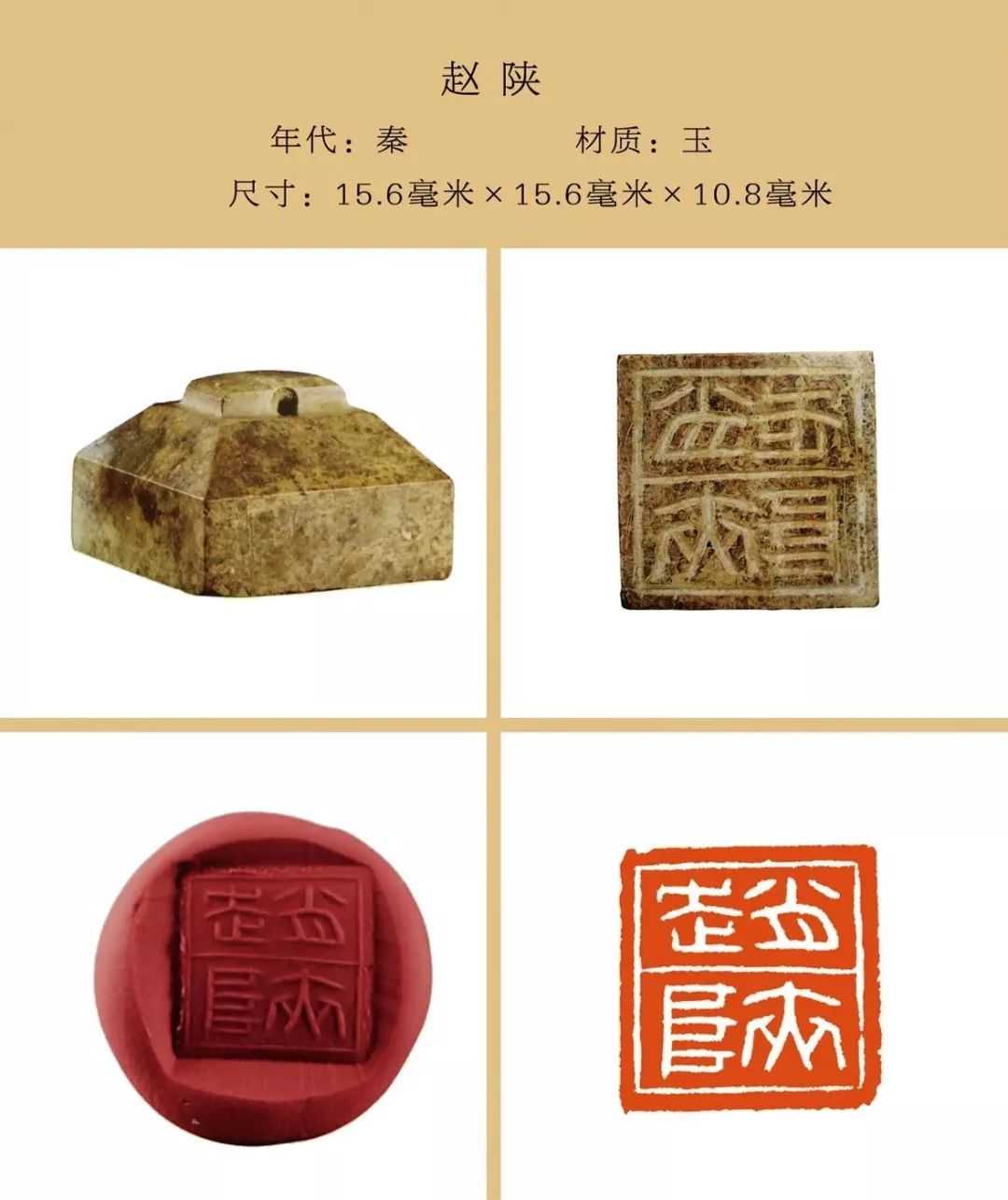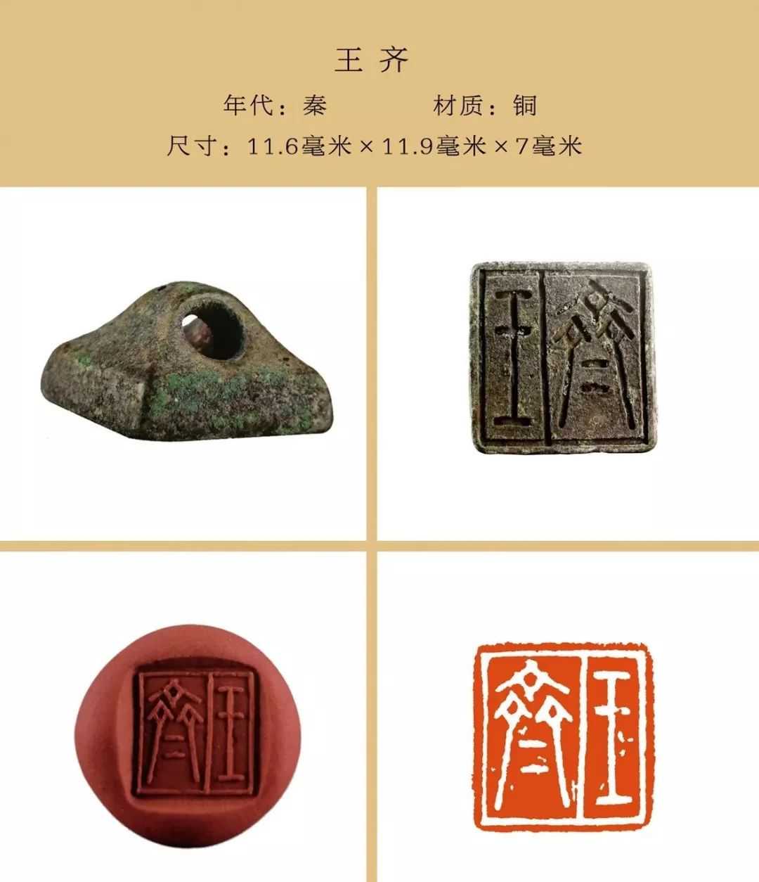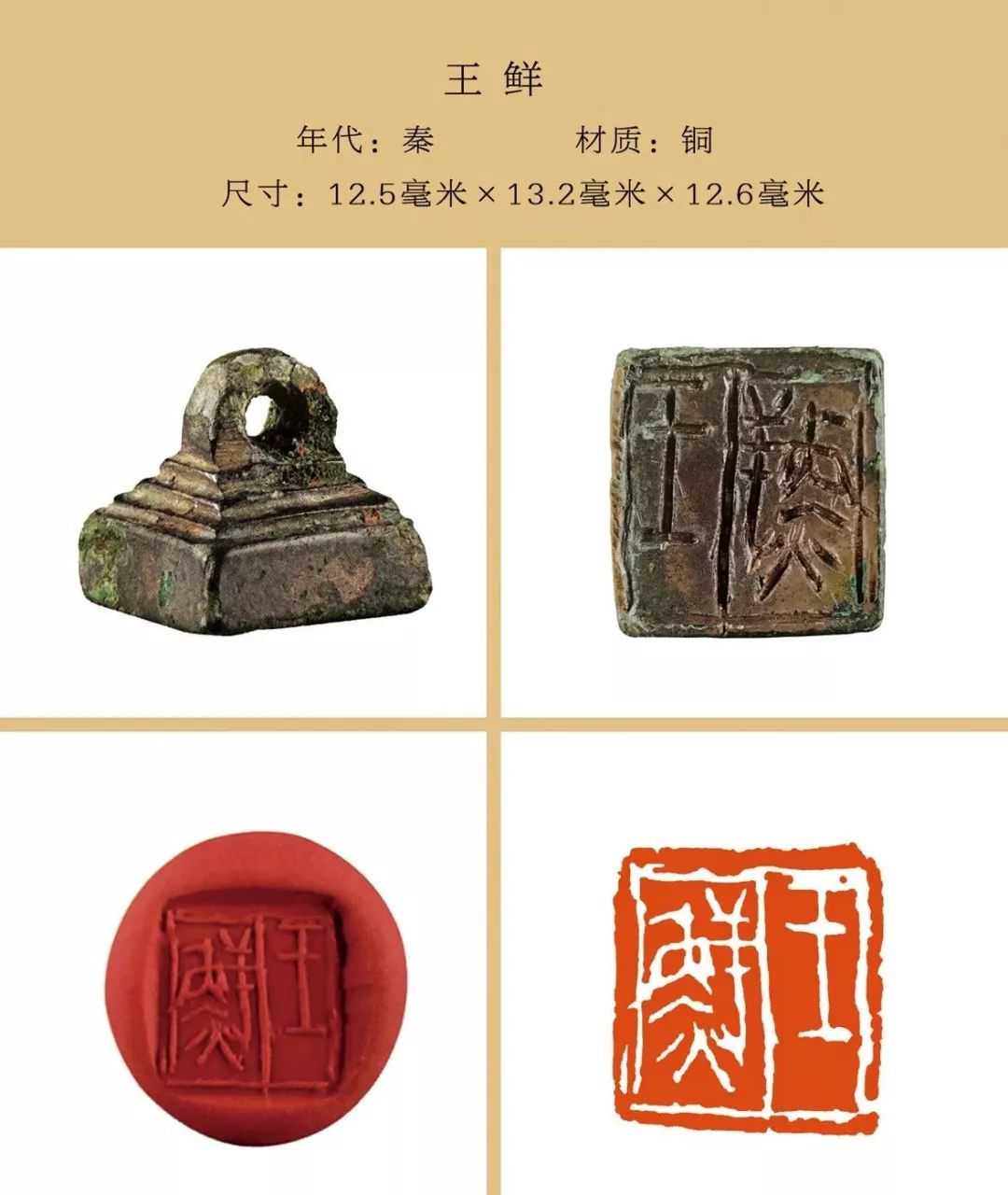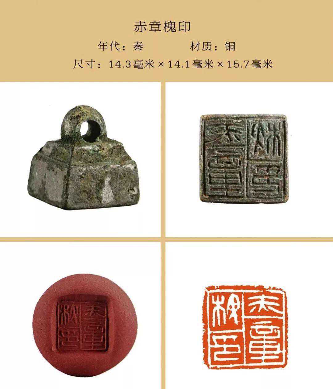 秦私印选自吴砚君先生主编的《盛世玺印录》。材质上分为玉印和铜印两种,字数最少一字,最多四字,尺寸除一件超过两厘米外,其他均在两厘米以内,且都有边框和界格,或加直隔线,或为田字格,长方形印(又称半通印)多用日字格。公元前221年秦始皇统一六国,统一文字,故秦私印书体风格趋于规范严谨,方整秀润,易于识认。纵观其特点还略带有战国文字遗风。印文章法布白,挪让有度,尤见古人匠心。