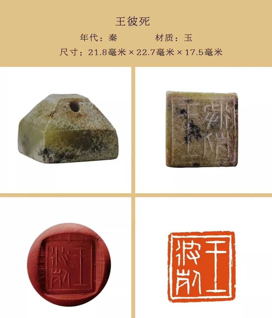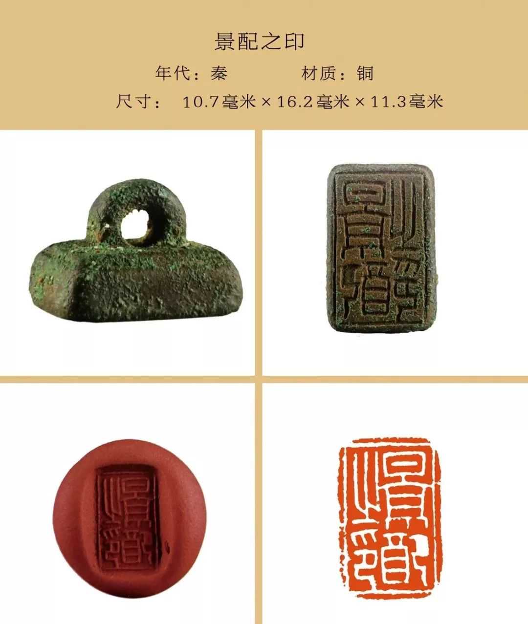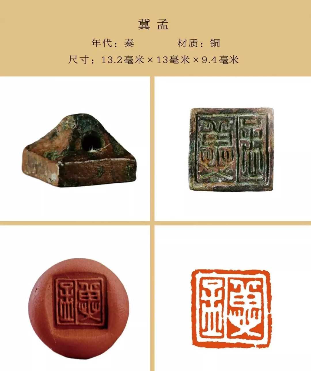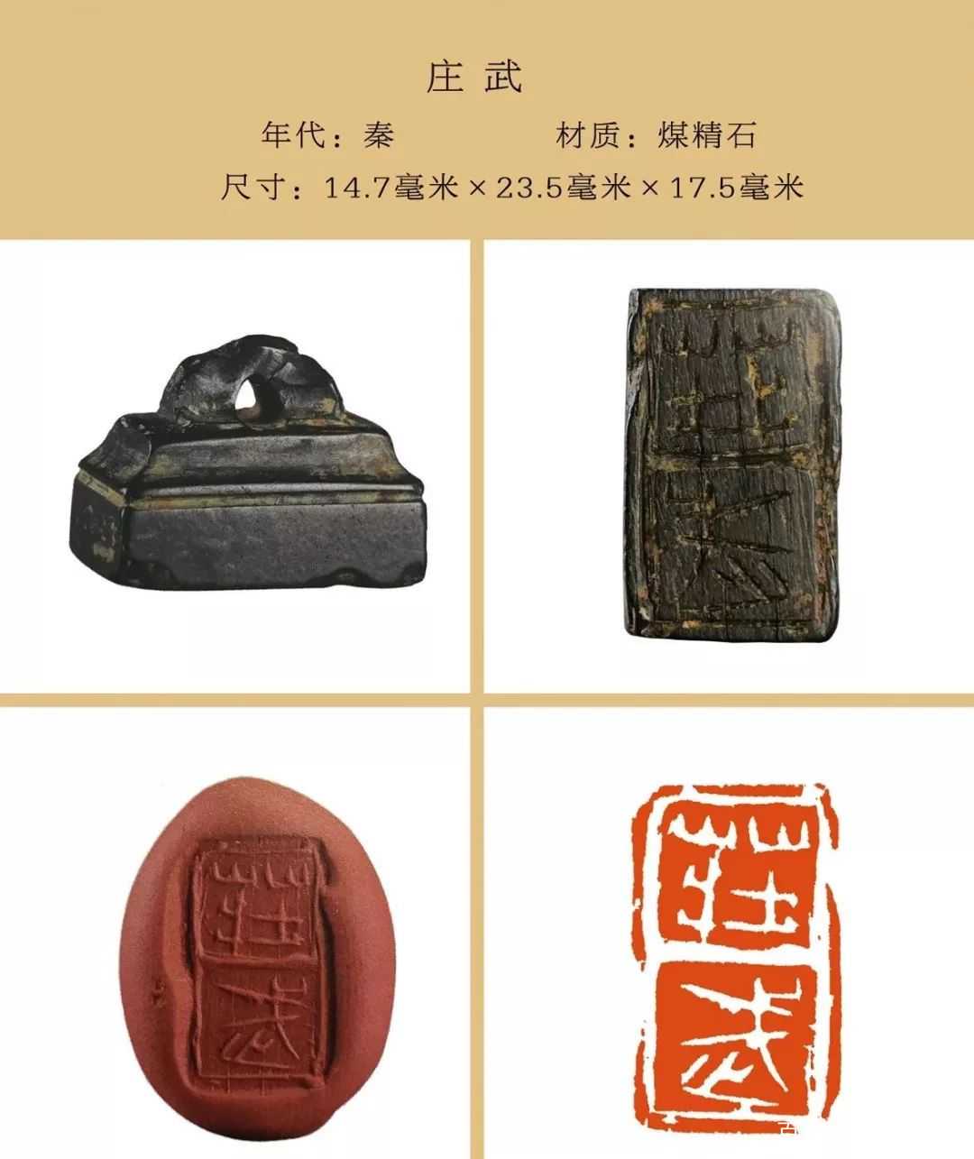 秦私印选自吴砚君先生主编的《盛世玺印录》。材质上分为玉印和铜印两种,字数最少一字,最多四字,尺寸除一件超过两厘米外,其他均在两厘米以内,且都有边框和界格,或加直隔线,或为田字格,长方形印(又称半通印)多用日字格。公元前221年秦始皇统一六国,统一文字,故秦私印书体风格趋于规范严谨,方整秀润,易于识认。纵观其特点还略带有战国文字遗风。印文章法布白,挪让有度,尤见古人匠心。