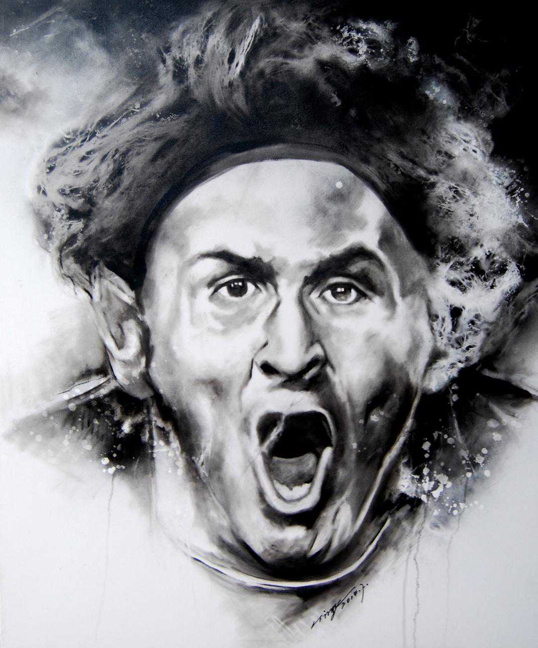 这些作品记录了一些人物,不管情愿不情愿,他们走入了我们的视野,书写了我们的时代。但这些作品并不是在为这些人物树碑立传,我们看到的,也许只是表面。画家想做的,只是为这些二维的描写赋予一个时间的维度,让时光去隔开距离,也许我们会读出新的风景。画家将这些人像付诸笔下需要以年计的时间,但相对凶猛的时间本身,也不过是一瞬间的事,立等可取。(节选)