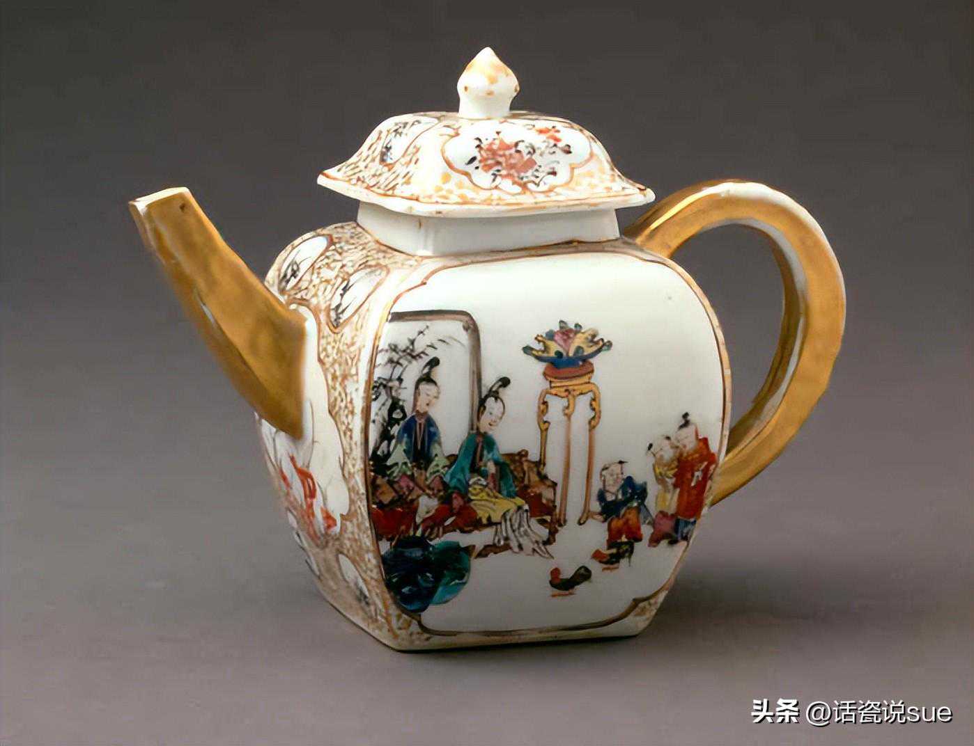 描金开光粉彩人物壶