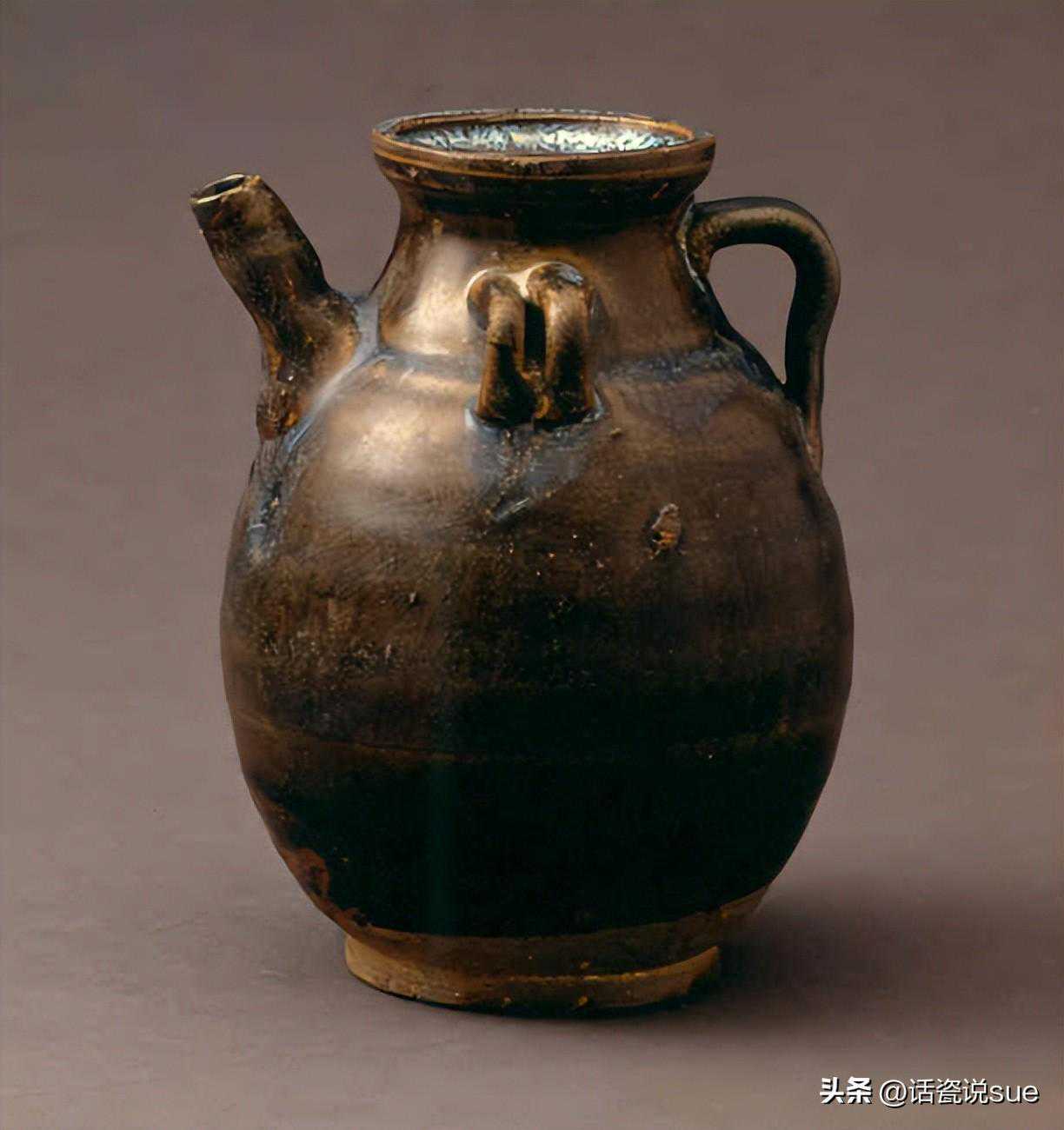 南宋黑釉褐斑双系注子
