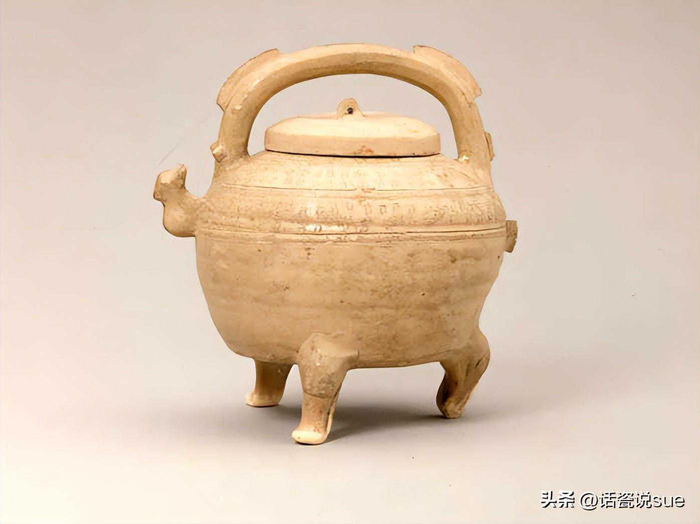 战国仿古盉形三足提梁壺