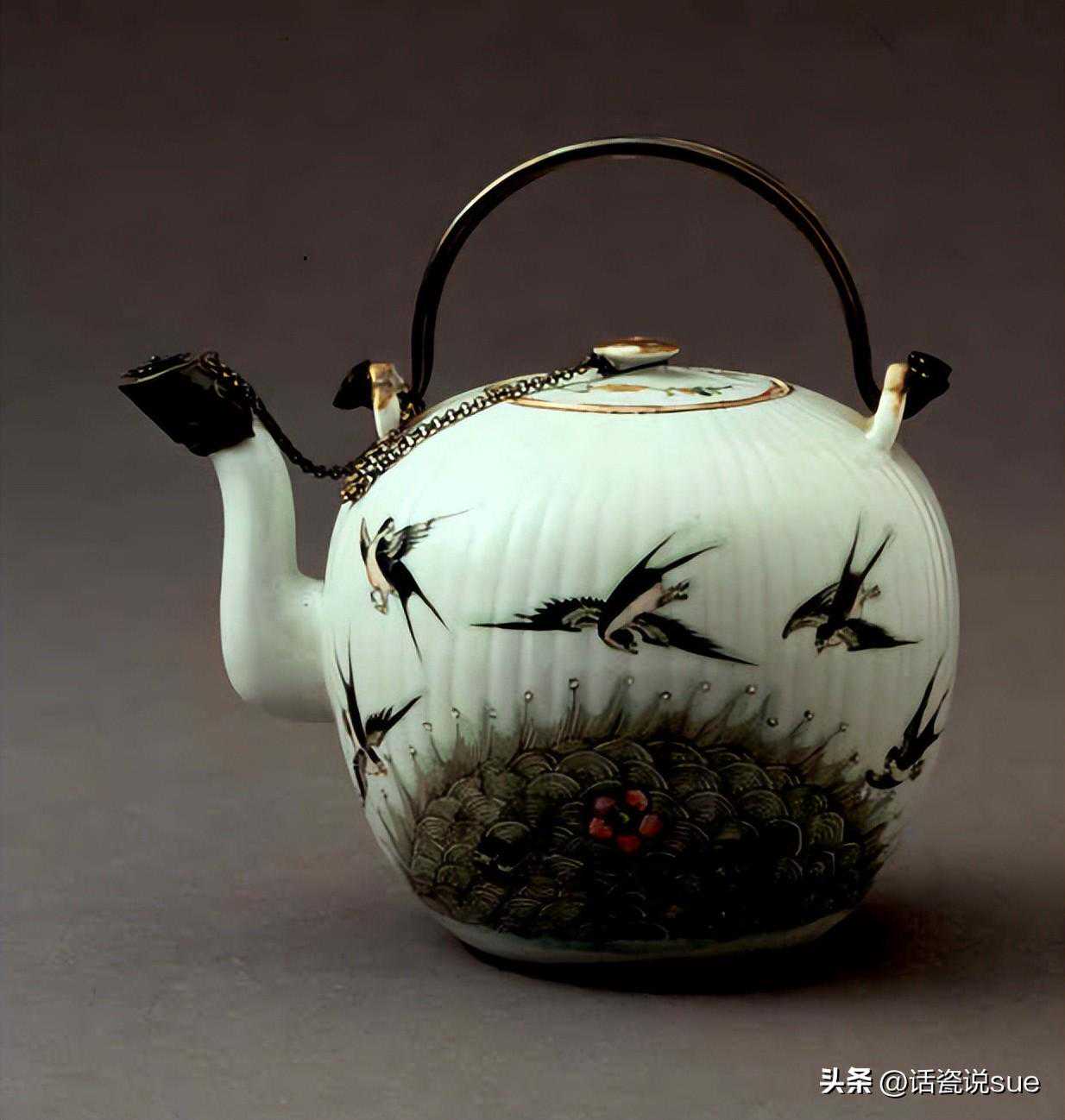 19世纪粉彩燕鱼直纹壶