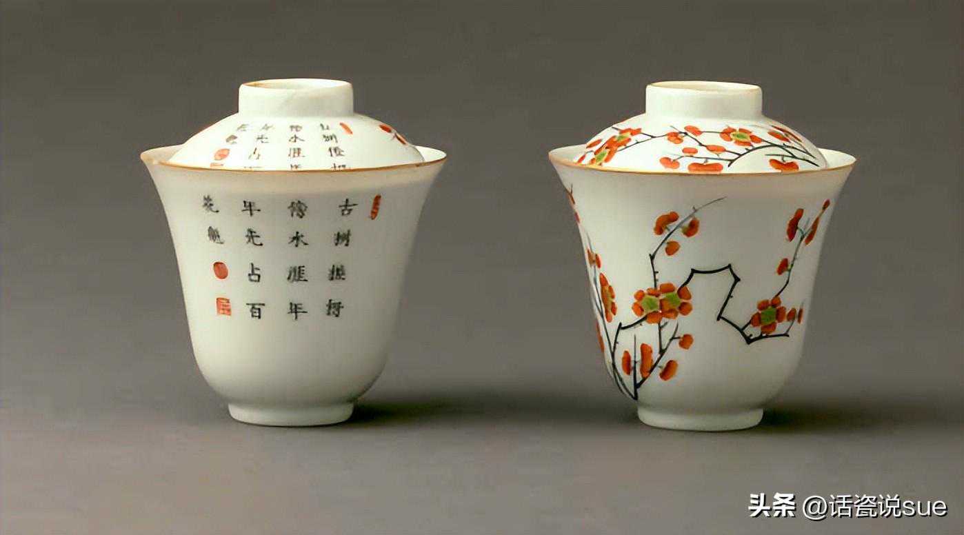 清道光发廊彩折枝梅花纹盖杯一对