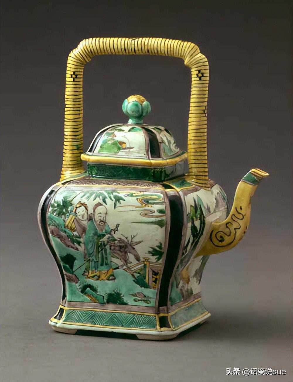 清康熙五彩山水人物壶
