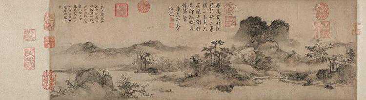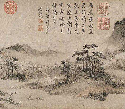 青浦自古就是水乡,境内的淀山湖,既是上海最大的淡水湖泊,又是母亲河黄浦江之源头。元代画家李升,晚年移居淀山湖畔,人称“谪仙”。《淀湖送别图》作于至正六年,画中清波荡漾,湖山错落;远望峰峦高耸,景色清幽,一派送别离人的气氛。