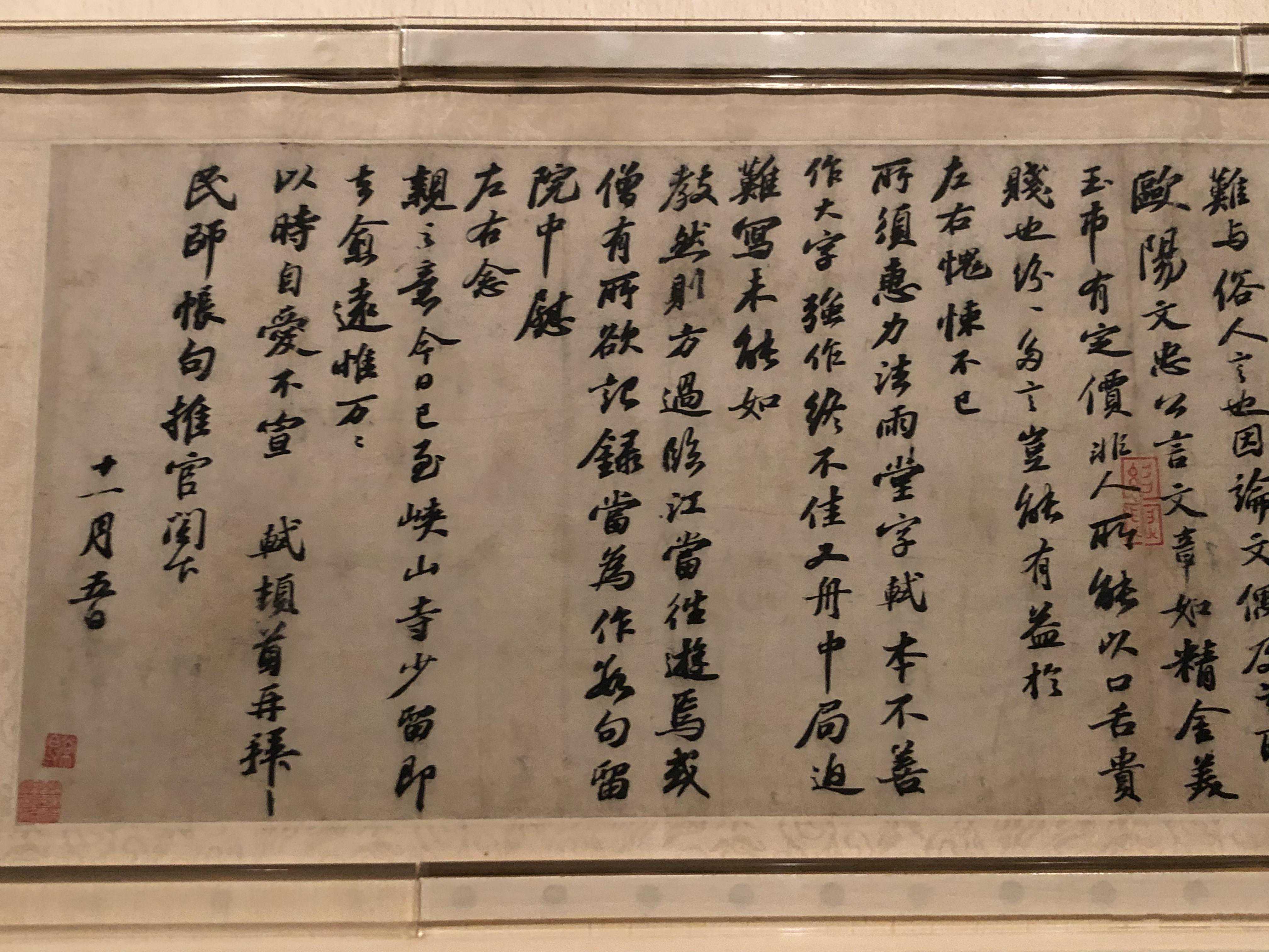 据史料记载,早在唐宋时期,随着中国经济中心的南移,逐渐形成新的海上贸易格局。紧邻吴淞江北叉的青龙镇则因占据了“控江连海”的地理优势,成为海上贸易的聚集之地。元豊五年,北宋书画大家米芾就曾担任过青龙镇镇监。米芾平生书法成就以行书为最大。南宋以来的著名汇帖中,多数刻米芾之法书,流播之广泛,影响之深远,在“北宋四大书家”中,实为首屈一指。