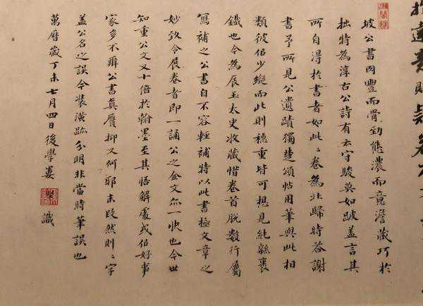 明代娄坚(上海嘉定人)跋苏轼书法作品