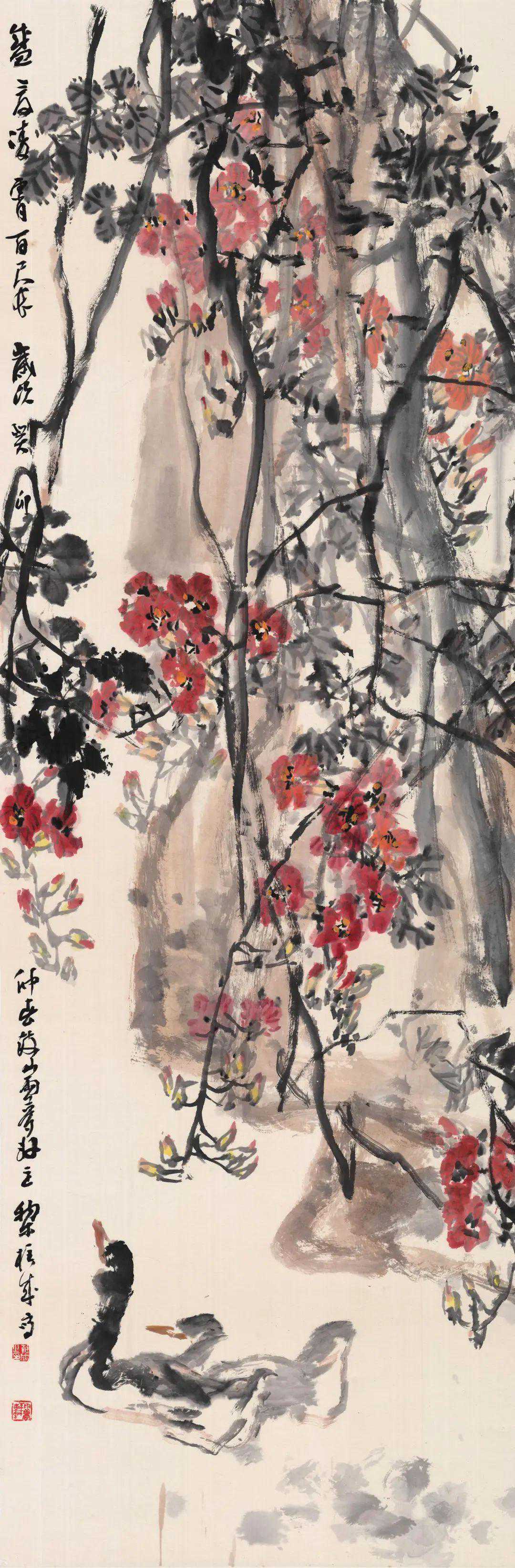 黎柱成的画具有浓烈的岭南特色,纵横均匀带来扑面而来的气息,尤其是他的传统程式和新题材的把握,处理的非常好,他的花鸟画的题材很多,包括海棠、牡丹、木棉都非常有特点。这些传统的题材又是非常难创新的题材,他用自己独特的表达方式呈现出来,是非常难得的。