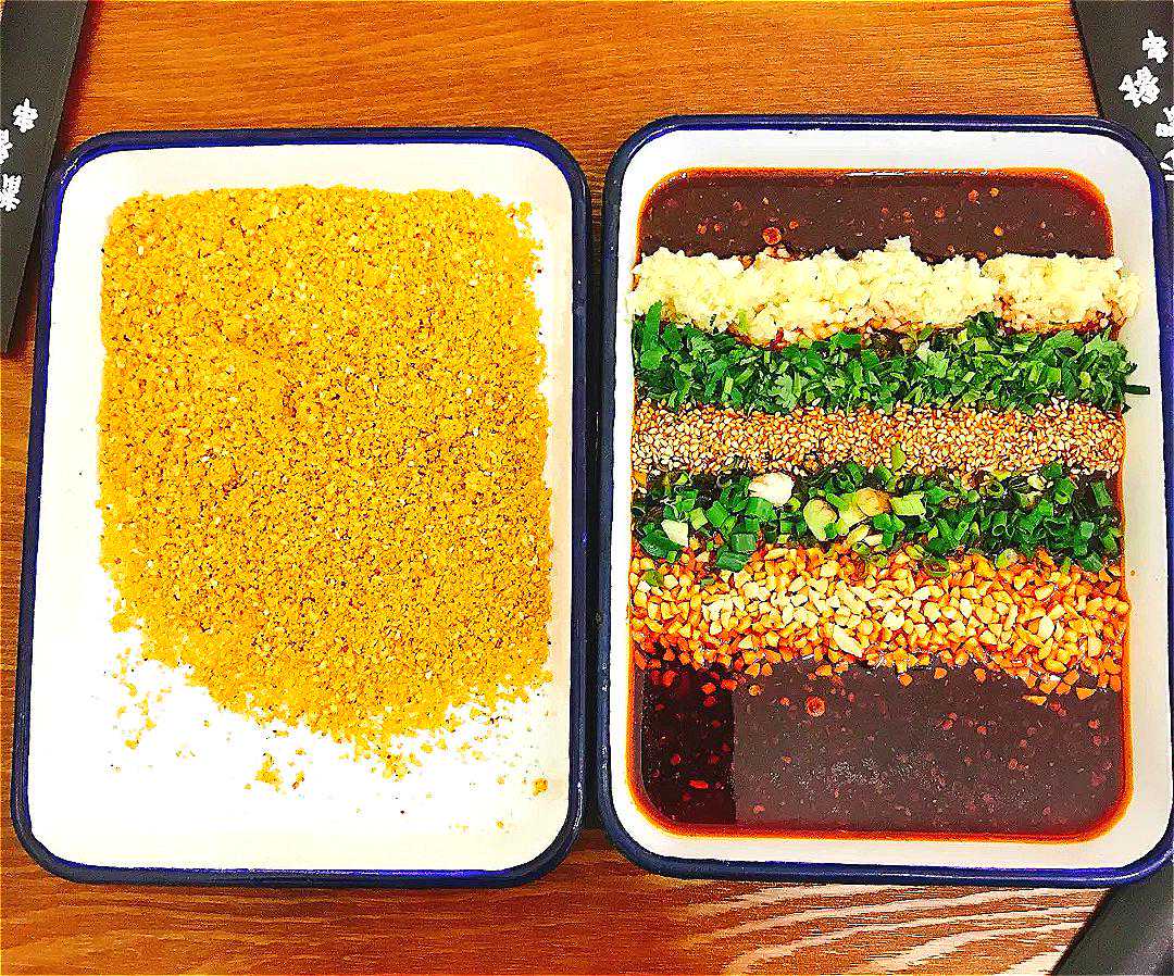 其实相比他们家的各式菜品而言,最具特色的却是他们家的独家油碟。你看这五颜六色的油碟,是不是感觉顿时食欲大开呢?