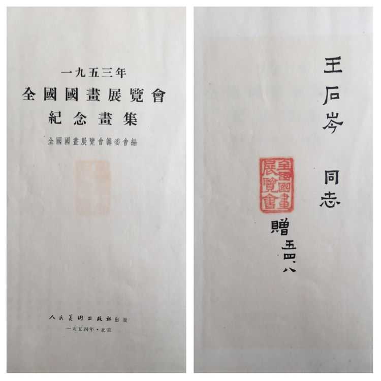 由于一九五三年国画展览会的重大影响,人民美术出版社于一九五四年出版了此次国画展览会的作品目录。这里展示的作品目录就是当时大展组委会亲自发给入选作者的,并有签名印章。